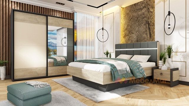 - Спални комплекти с матрак в цвят графит с дъб суров и кашмир