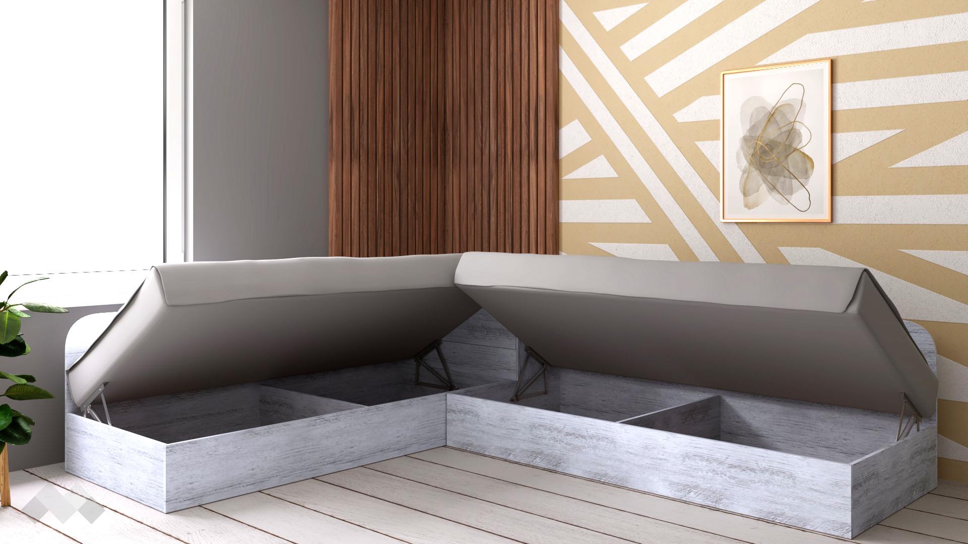 Дизайнът на ъглови легла №1 е проектиран с изолиращи табла по цялата дължина, което гарантира по-голям кофорт. Семплият дизайн на мебелите и възможността за ляво и дясно разположение правят комплекта универсален и подходящ за всеки интериор, а внимателно подбраните материали и умелата изработка гарантират дълъг период на употреба.