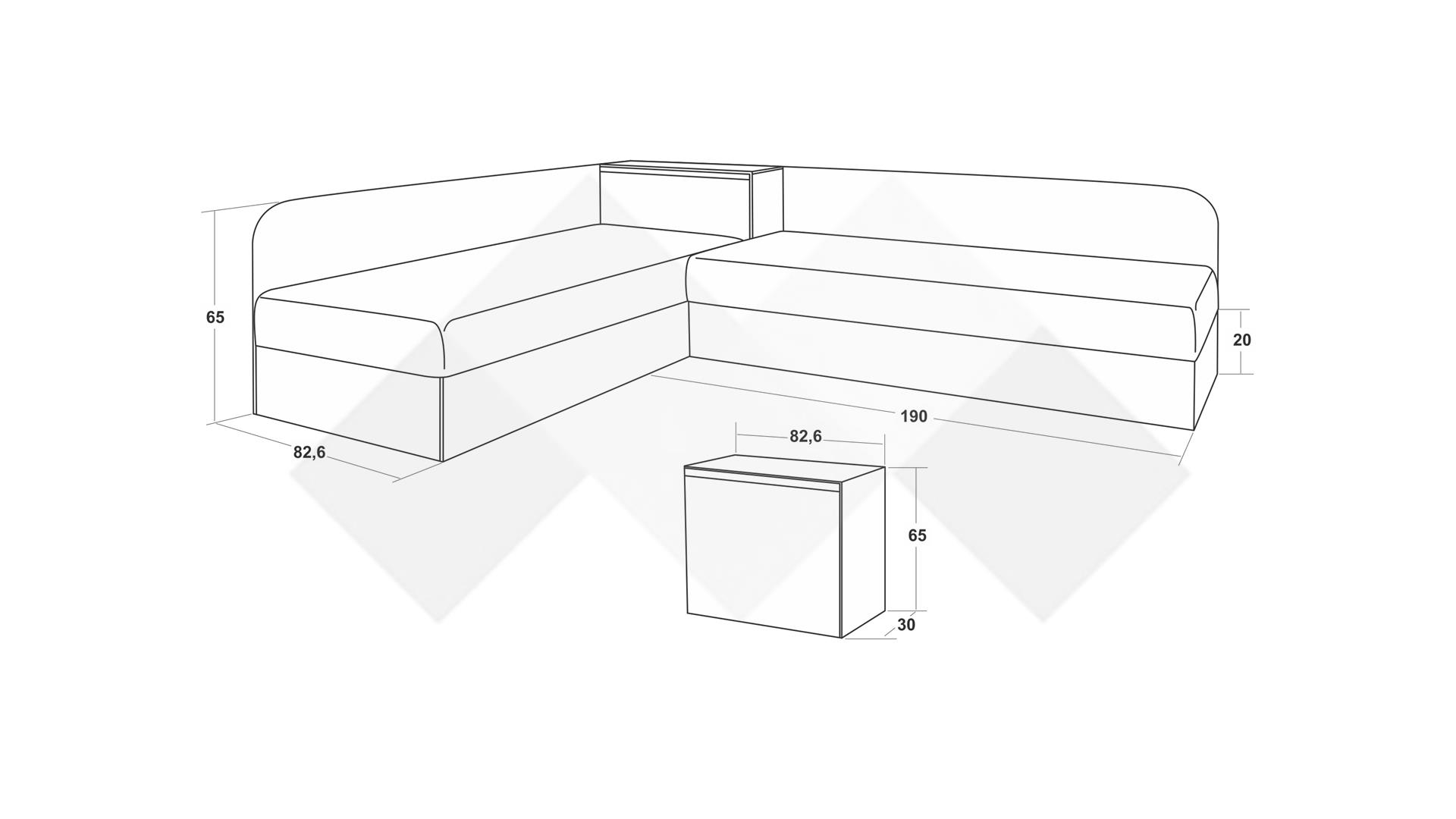 Размери на леглата: Д: 190 см, Ш: 82,6 см, В: 65 см