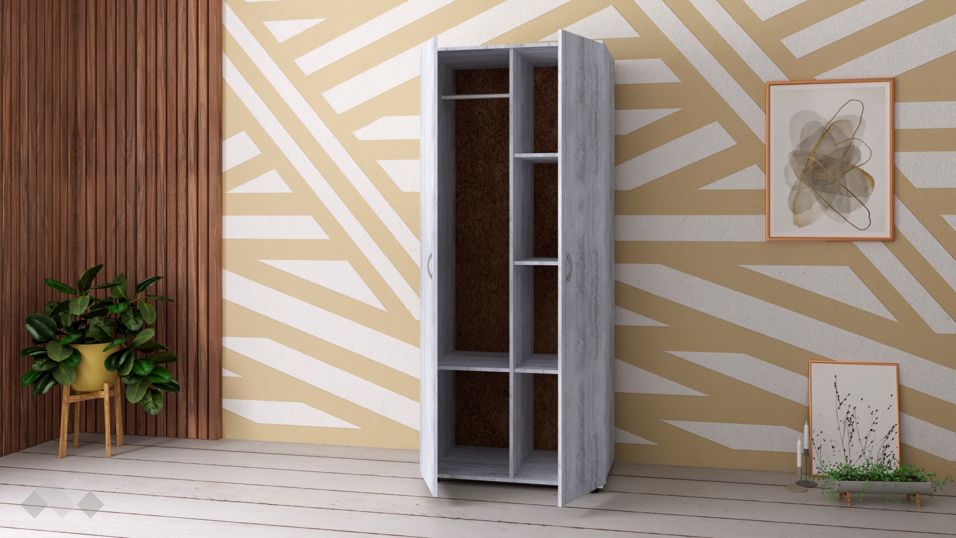 Гардероб №1 е двукрилен, с 4 рафта и лост за закачалки. Има практично разпределение, което ще ти позволи да подредиш дрехите и аксесоарите си. Можеш да използваш рафтовете за съхранение на сгънати дрехи, а на лоста да закачиш всичко, което искаш да ти бъде под ръка. Височината и дълбочината на гардероба са оптимално проектирани, за да предоставят достатъчно пространство за съхранение, без да заемат прекалено много място в стаята. Двукрилната конструкция улеснява достъпа до всички части на модела.