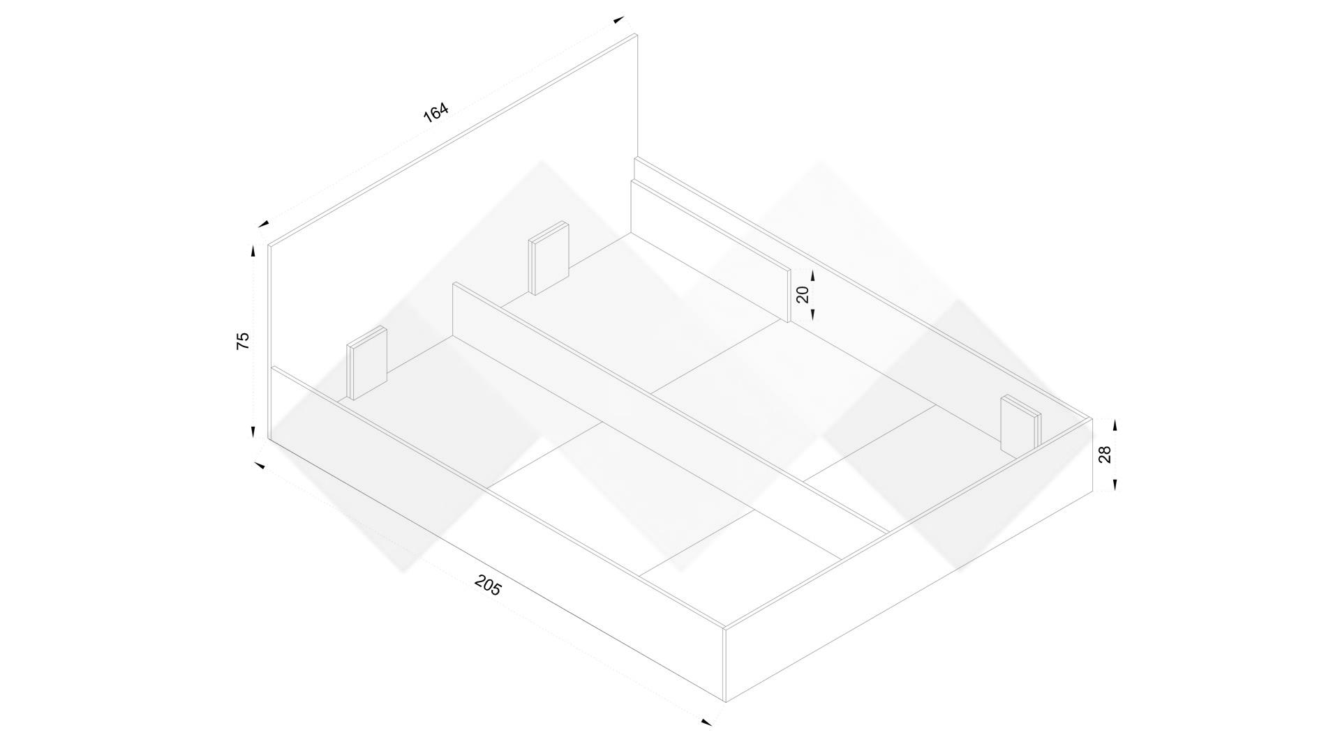 Д: 205 см Ш: 164 см В: 75 см