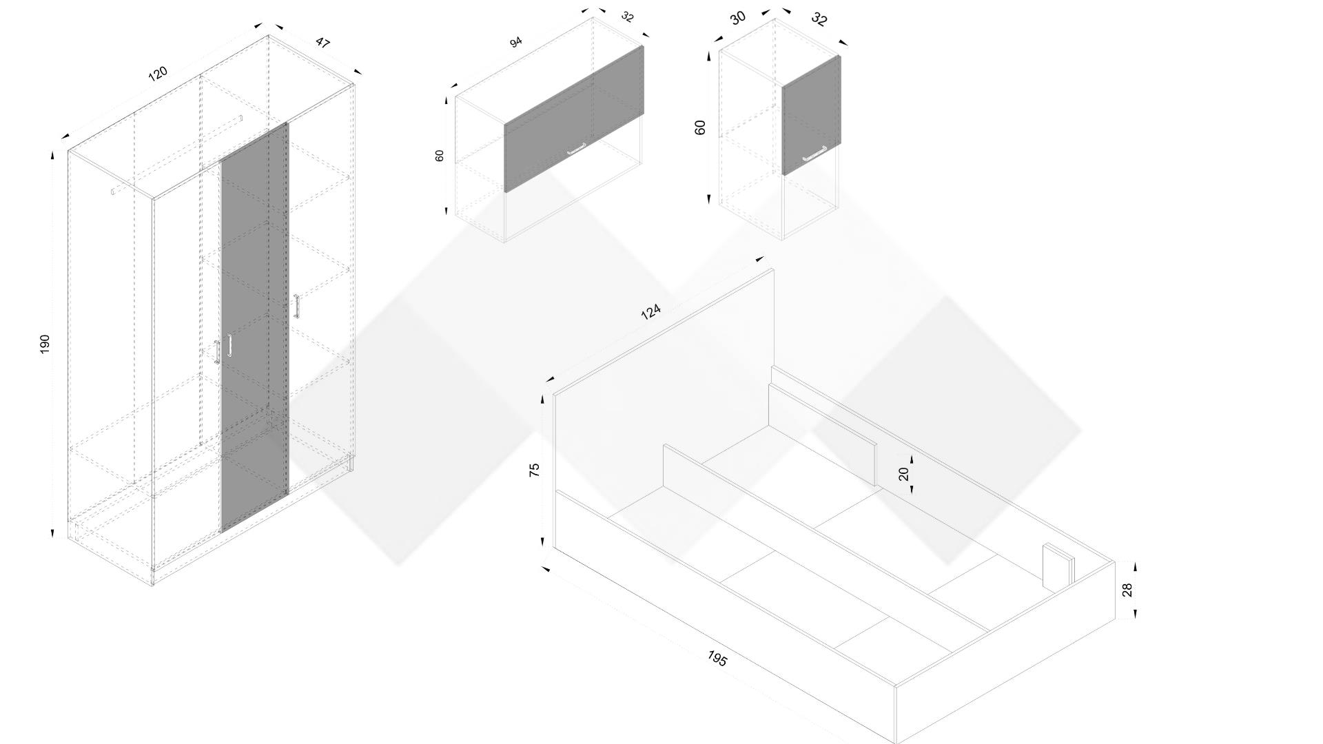 ⭐ Предимства: ✓ легло за матрак 120/190 ✓ повдигащ механизъм ✓ трикрилен гардероб ✓ 2 надстройки ✓ модерен дизайн ✓ качествена изработка ✓ 16 мм ПДЧ