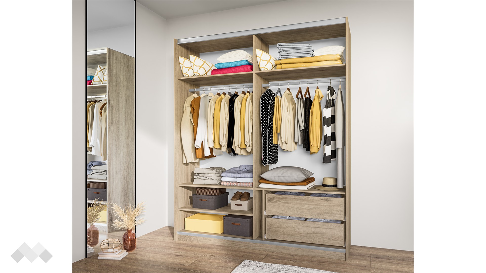 Ще ти допаднат и огледалата, разположени на вратите – те превръщат гардероба в незаменим помощник при избора на тоалет. Освен това, благодарение на тях, стаята ще бъде по-осветена и ще изглежда визуално по-голяма. Плъзгащите врати правят гардероба подходящ дори за най-малките спални, тъй като за отварянето им не се нуждаеш от допълнително пространство. В същото време дълбочината на гардероба позволява да съхраняваш вътре и по-обемни вещи.