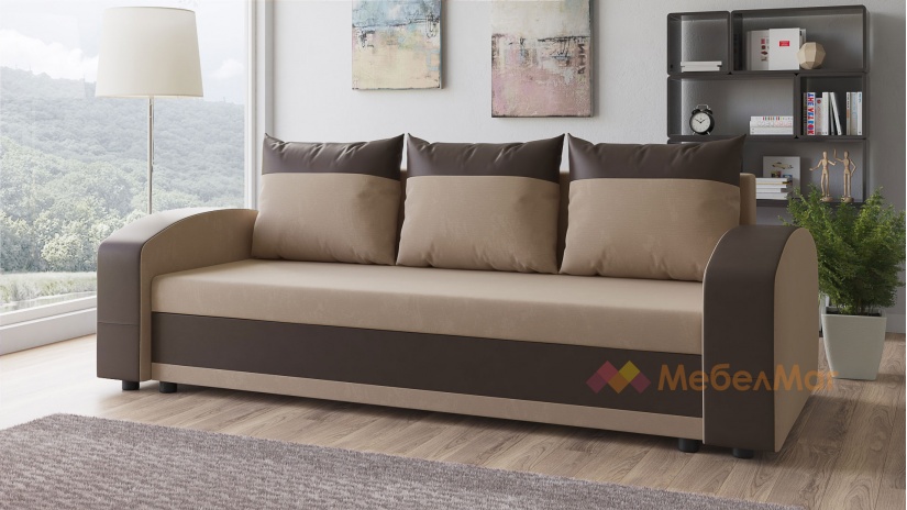 Подлакътниците са проектирани да отпуснеш ръцете си в удобна поза. В горната им част и в основата на дивана е поставен фриз от лесна за почистване и поддръжка еко кожа. Диванът е със здрава конструкция от ПДЧ. За по-лесна поддръжка, сме поставили ципове на възглавниците, за да можеш да сваляш и да переш калъфите, когато се замърсят.
