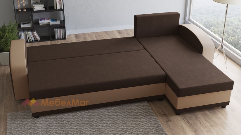 Ъглов диванАдриан Lкафяв с бежова кожа универсален ъгъл
