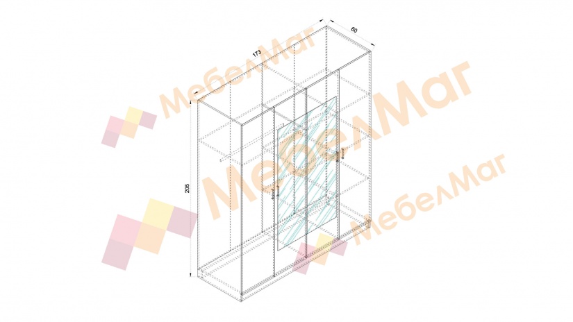 Гардеробът е практично разпределен, изцяло отговарящ на съвременните стандарти за съхранение на дрехи. Вратите се отварят леко и ти дават бърз достъп до всичко – зад две от вратите ще откриеш пет удобно разпределени просторни рафтове, готови да поберат всичките ти дрехи. Не сме забравили и лоста за закачалки, а над него е разположен удобен рафт, където да подредиш аксесоари, кутии за съхранение или други вещи. Така пестиш време и изборът на ежедневен тоалет се превръща в детска игра. Големите огледала на две от вратите правят гардероба незаменим помощник при избора на тоалет и допринасят за по-добро разпределение на светлината в помещението.