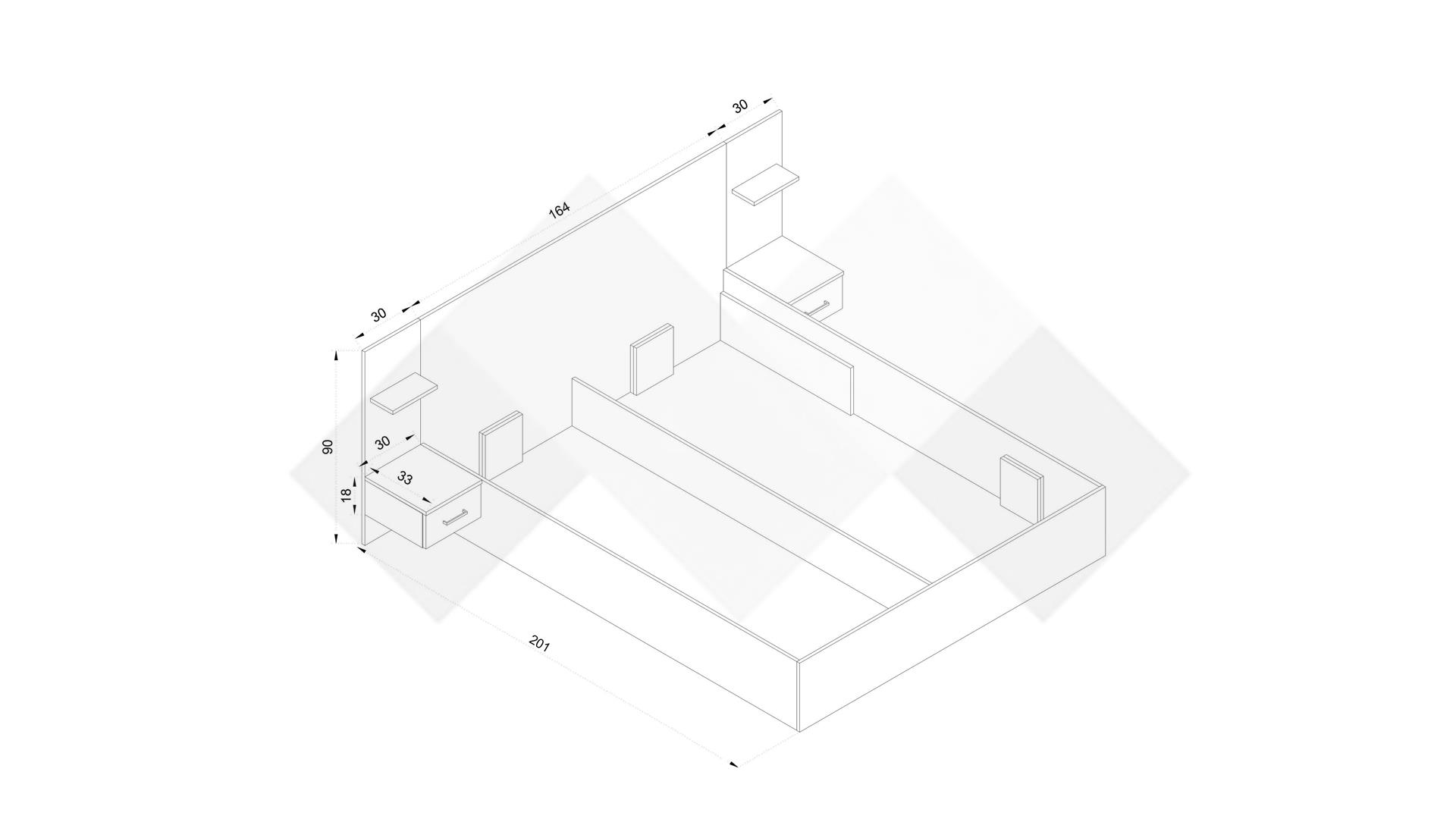 Спалнята е за матрак с размер 160/200 см, с възможност за поставяне на механизъм за повдигане с амортисьори. Благодарение на него ще можеш да използваш пространството под матрака за съхранение на одеяла, завивки и куп други вещи.