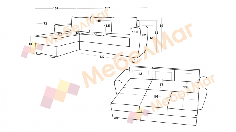 Със сигурност ще си впечатлен от удобството му, а ако решиш да се отпуснеш още повече, както заслужаваш, диванът за секунди се трансформира в удобно легло с размери 133/198 см, благодарение на подматрачния си механизъм. Скритата под лежанката ракла ти позволява да подредиш всички излишни вещи отдолу.