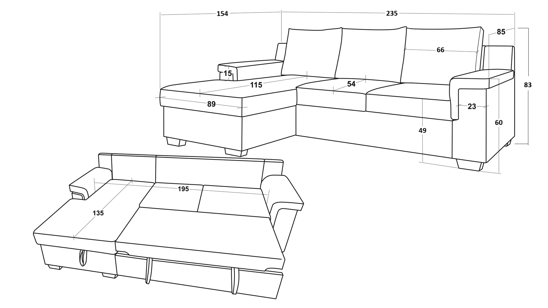 Диванът е оборудван с механизъм за сън, който лесно се трансформира в удобно легло, осигурявайки място за отдих и релакс. Облегалните и седалните възглавници са с изцяло сваляеми калъфи – лесни за поддръжка и подновяване. Широките подлакътници допълват усещането за уют и стабилност.