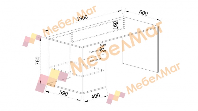 Плотът е достатъчно широк, за да можеш да поставиш лаптоп или настолен компютър, но и в същото време ще остане място за писане на домашни. Бюрото е с височина – 76 см, а страничните плоскости осигуряват стабилна опора.