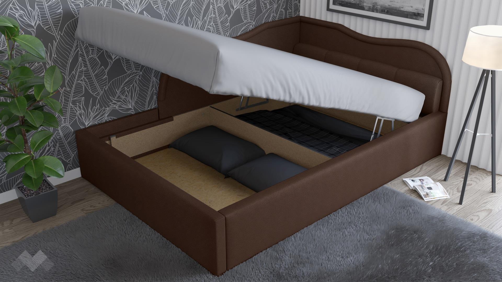 Леглото е с меки форми и елегантен дизайн. Подходящо е за матрак 140/200 см. Под матрака се открива широко пространство, готово да побере всички възглавници и завивки, на които все не намираш място. Така не се налага да закупуваш допълнителни шкафове у дома и пестиш пространство и пари.