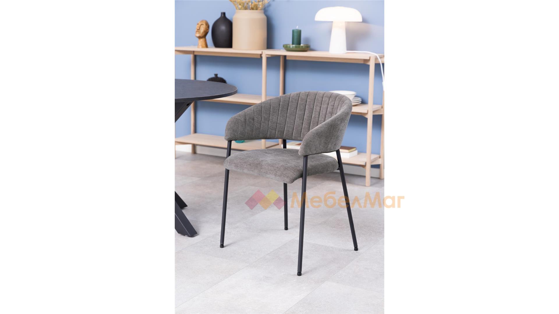 Отвореният гръб не само добавя усещане за лекота във визията, но и осигурява допълнителен комфорт. Стоманените кръгли крака гарантират стабилност и хармонично се вписват в изчистената и модерна естетика на стола.