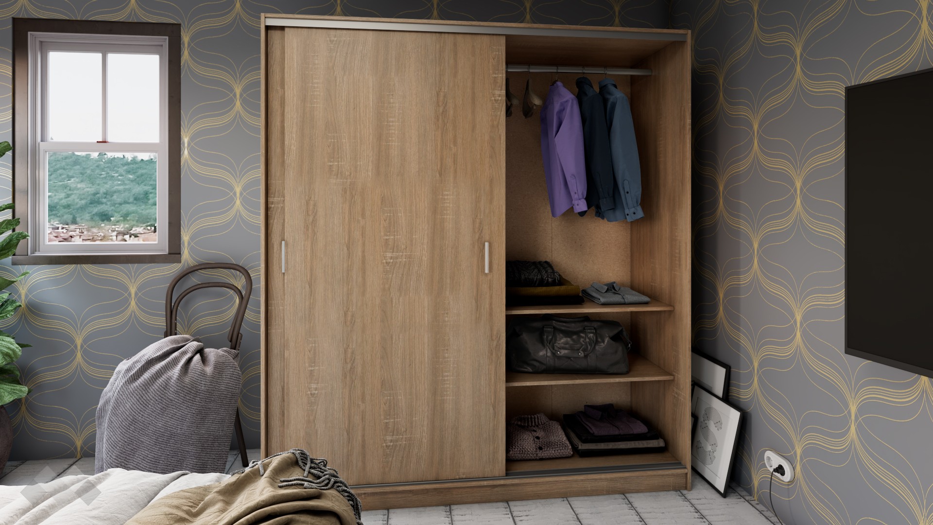 Гардероб Арго е перфектното решение за любителите на мебели със семпъл и изчистен дизайн. Със своите плъзгащи врати и практично вътрешно разпределение, той напълно отговаря на съвременните изисквания за съхранение на дрехи.