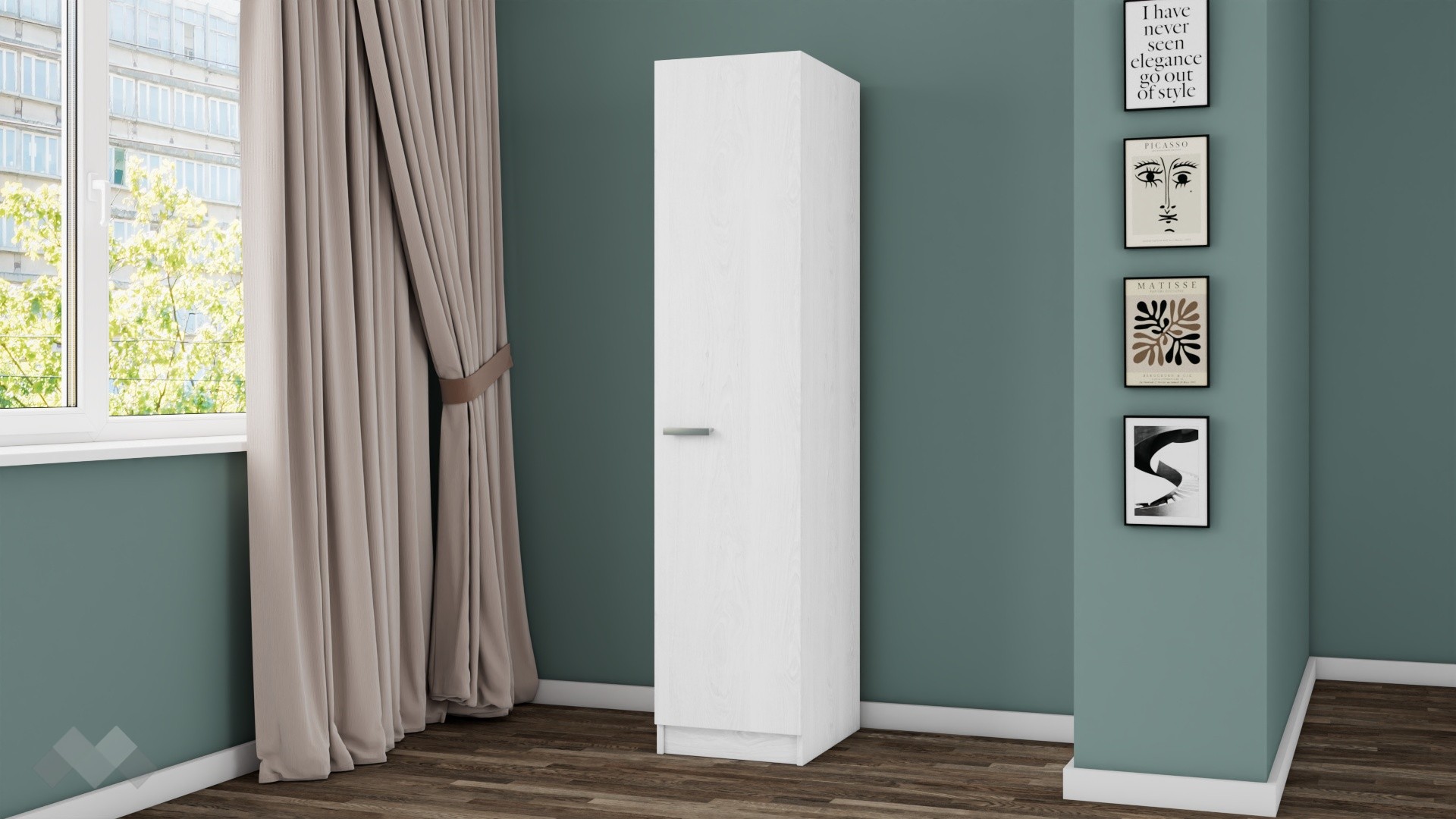 Еднокрилен гардероб Арго е практично и стилно решение за организиране на дрехи и аксесоари в по-малки пространства. Със своя изчистен и компактен дизайн този гардероб лесно се вписва в различни интериори и е особено подходящ за антре, спалня или детска стая.