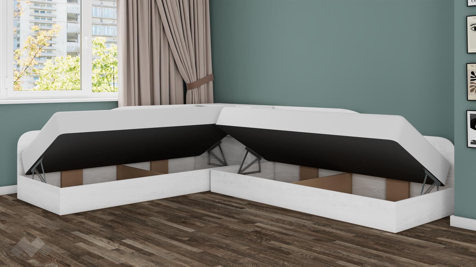 Ъгловите легла с ракла са идеалното решение за детската стая, съчетавайки удобство, стил и практичност в един функционален дизайн. Те предоставят уютно място за отдих и сън, като същевременно спестяват място за игри и свободно движение. Между леглата удобно се разполага ракла, която предлага практично съхранение на завивки и възглавници – всичко е на ръка разстояние и подредено.
