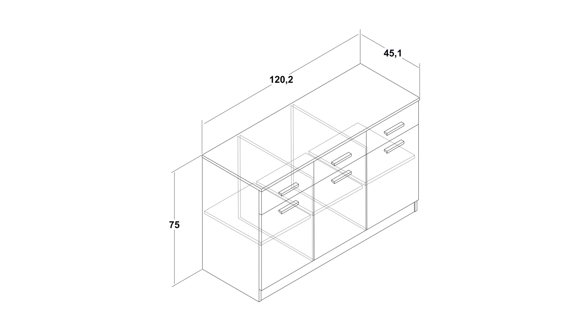 Д: 120 см, Ш: 45 см, В: 75 см