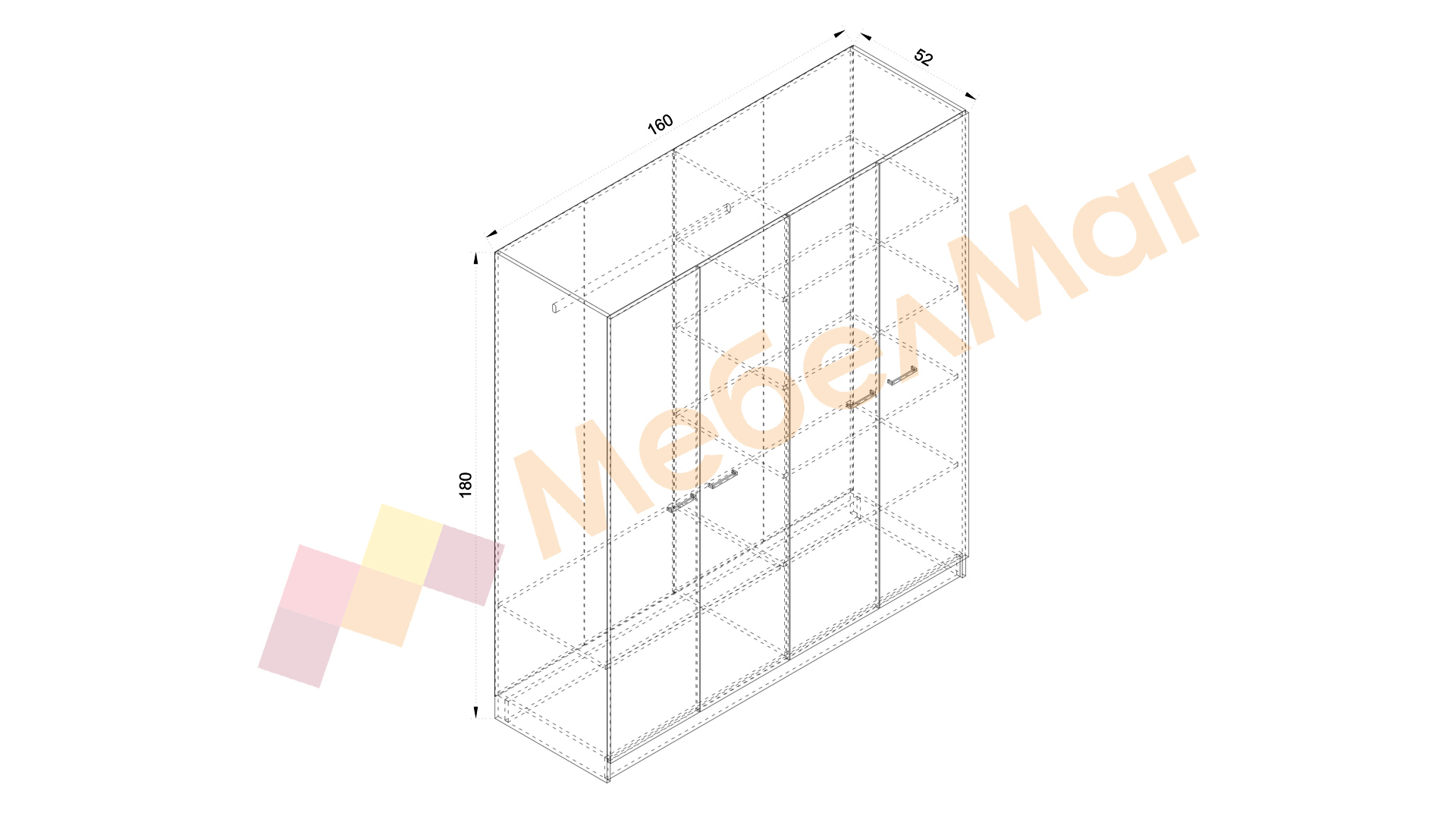 ✓ четирикрилен ✓ 5 рафта ✓ лост за закачалки ✓ модерен декор ✓ практично разпределение ✓ качествена изработка