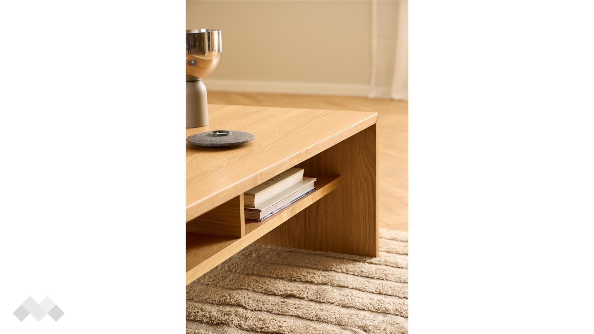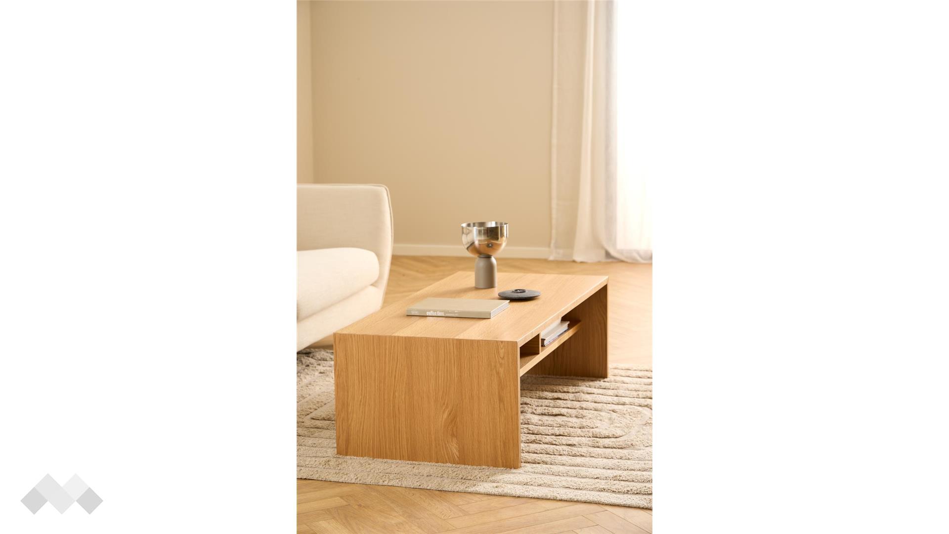 Холна маса Арлон впечатлява със своята семпла елегантност и функционален дизайн. Правоъгълната ѝ форма и изчистените линии я правят идеален избор за модерни и минималистични интериори. Конструкцията от ПДЧ осигурява стабилност и издръжливост, а практичното отворено отделение предоставя удобно място за съхранение на книги, списания или дистанционни.