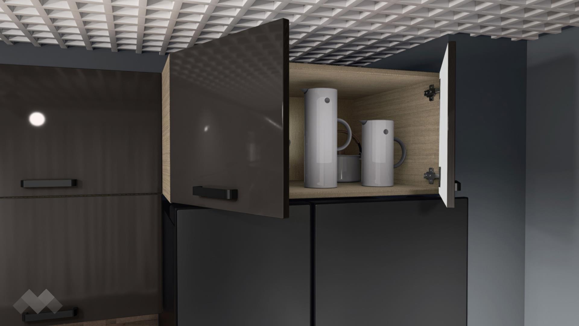 Страхотната модерна комбинация между корпус мока и лице антрацит гланц, придава на кухнята характер и уют.