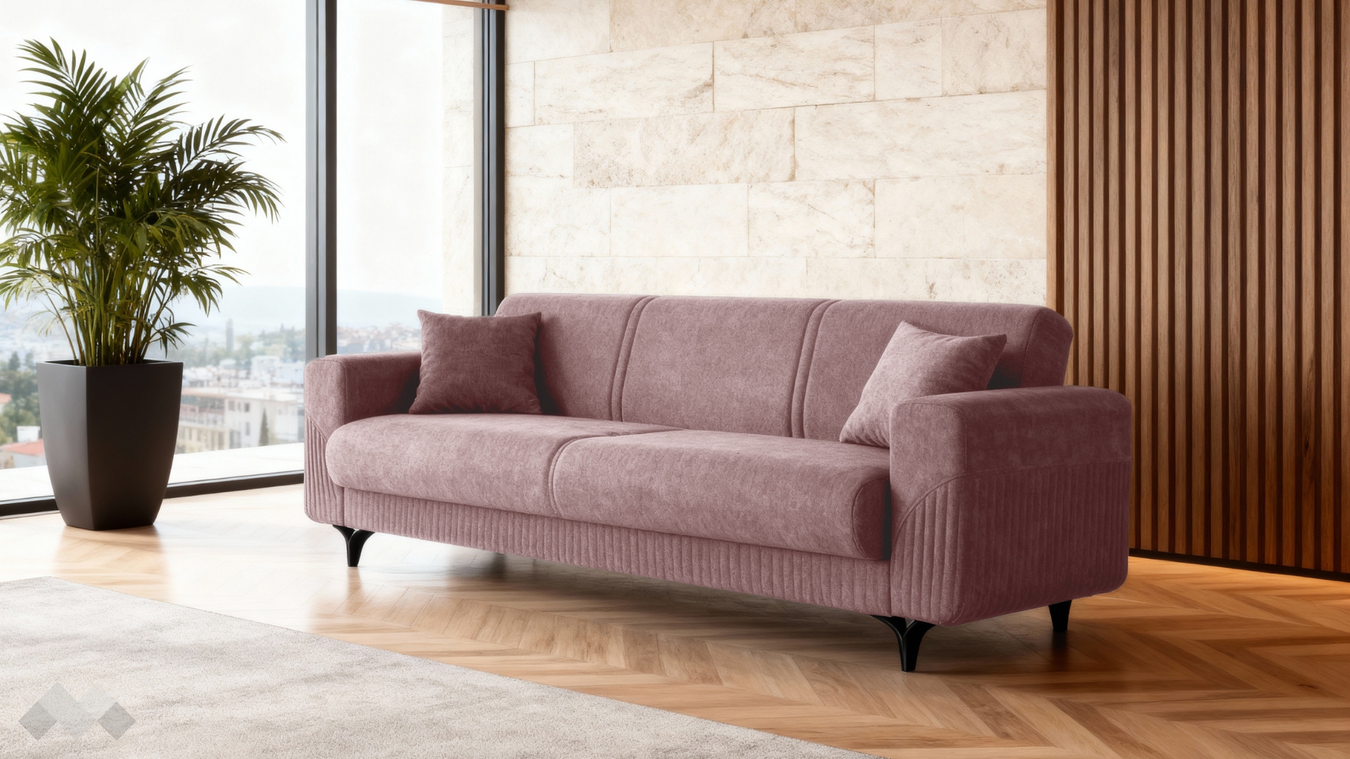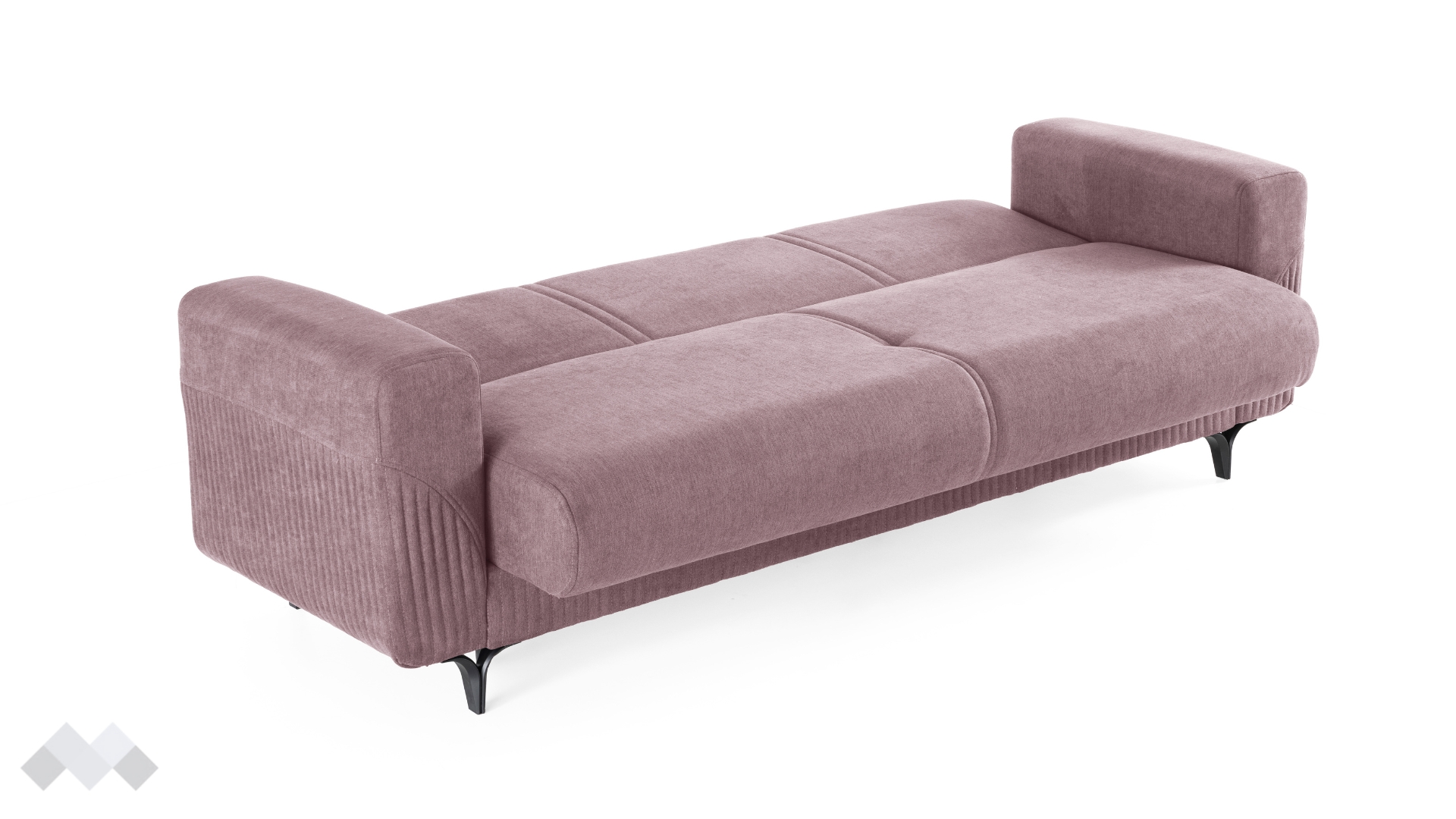 Създаден да впечатлява със своя външен вид, диван Атон е и функционален - с минимално усилие се превръща в комфортно и просторно легло - 104/182 см, посредством клик-клак механизъм. Диван Атон пристига в комплект с две възглавнички, които ще се превърнат в любимия ти помощник за следобедна дрямка. Под седалката ще откриеш още един плюс - ракла, в която можеш да съхраняваш вещите, които искаш да скриеш от погледа си, за да придадеш спретнат и подреден вид на стаята.