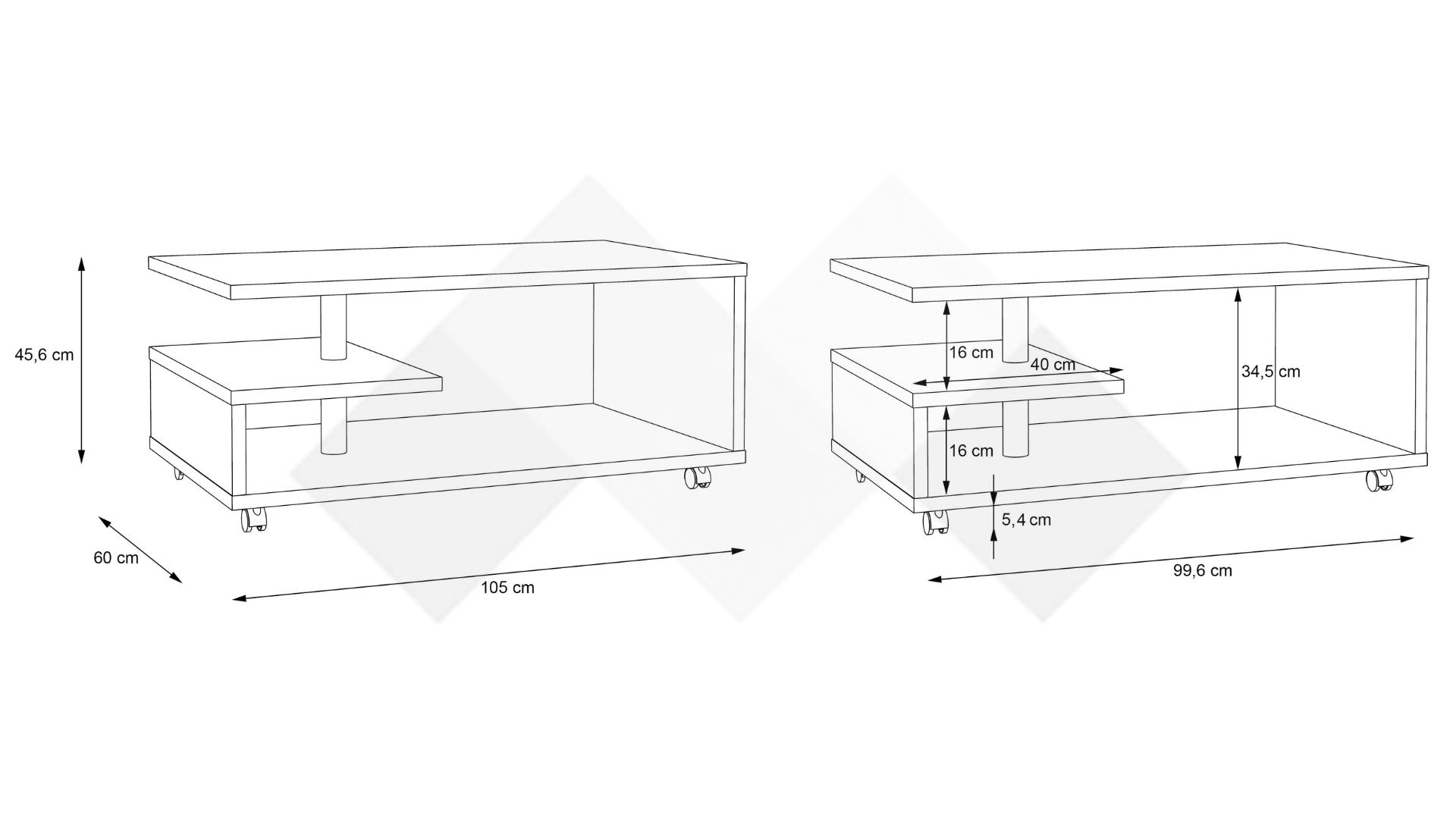 Холна маса Байли е идеалното допълнение за твоя дом! Ако обичаш да си в крак с последните модни тенденции, ще оцениш излъчването на холната маса. Изчистените линии превръщат масичката в отлично решение за интериора вкъщи. Под основния плот се крие втори, скрит и удобен за разполагане на списания, дистанционни, мобилни телефони и други вещи, които искаш да са ти под ръка, без да се виждат.