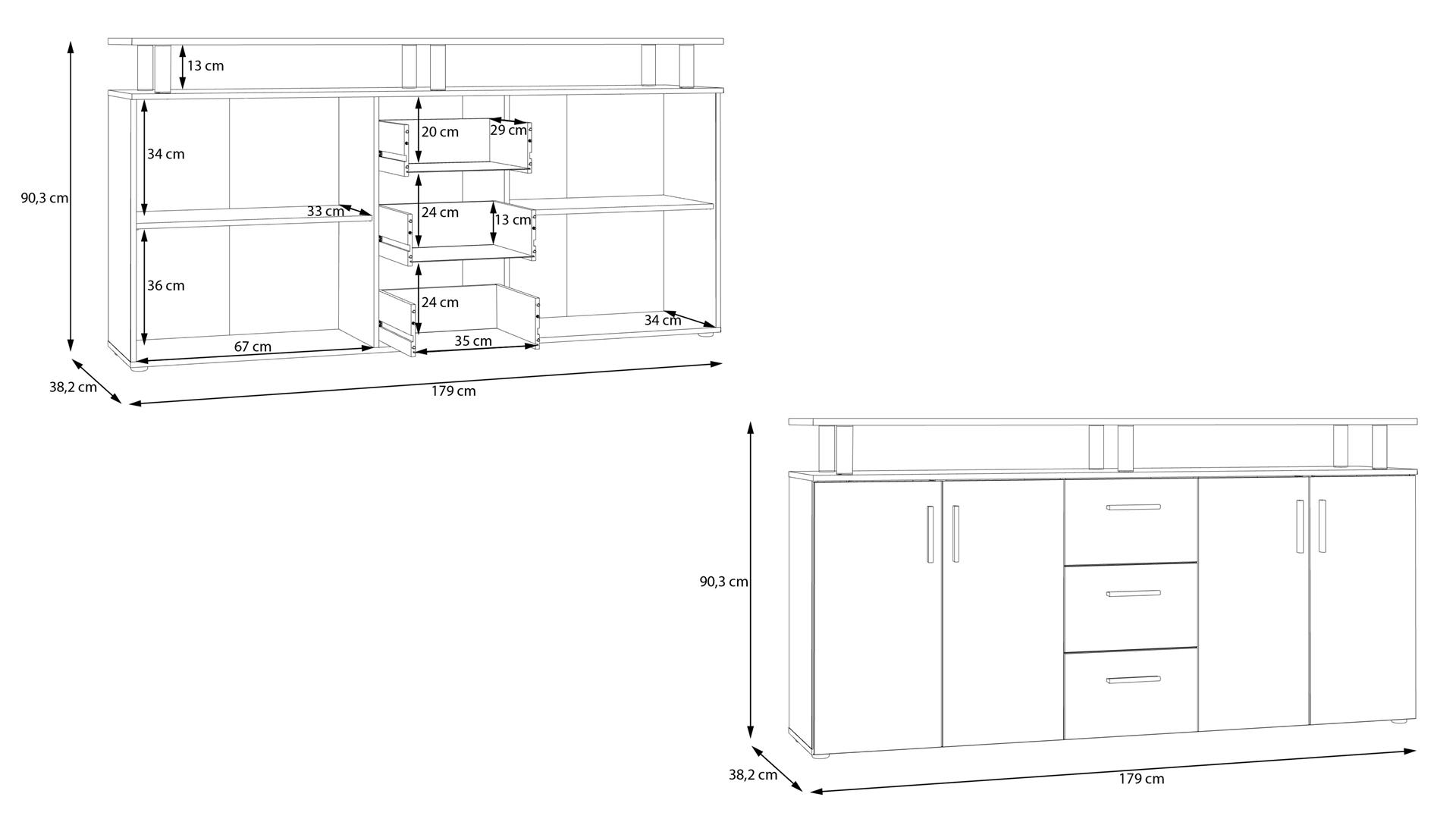 ⭐ Предимства: ✓ 18 мм ПДЧ ✓ 15 мм ПДЧ ✓ 3 чекмеджета ✓ 2 големи шкафа ✓ стилен дизайн ✓ практичен ✓ качествена изработка
