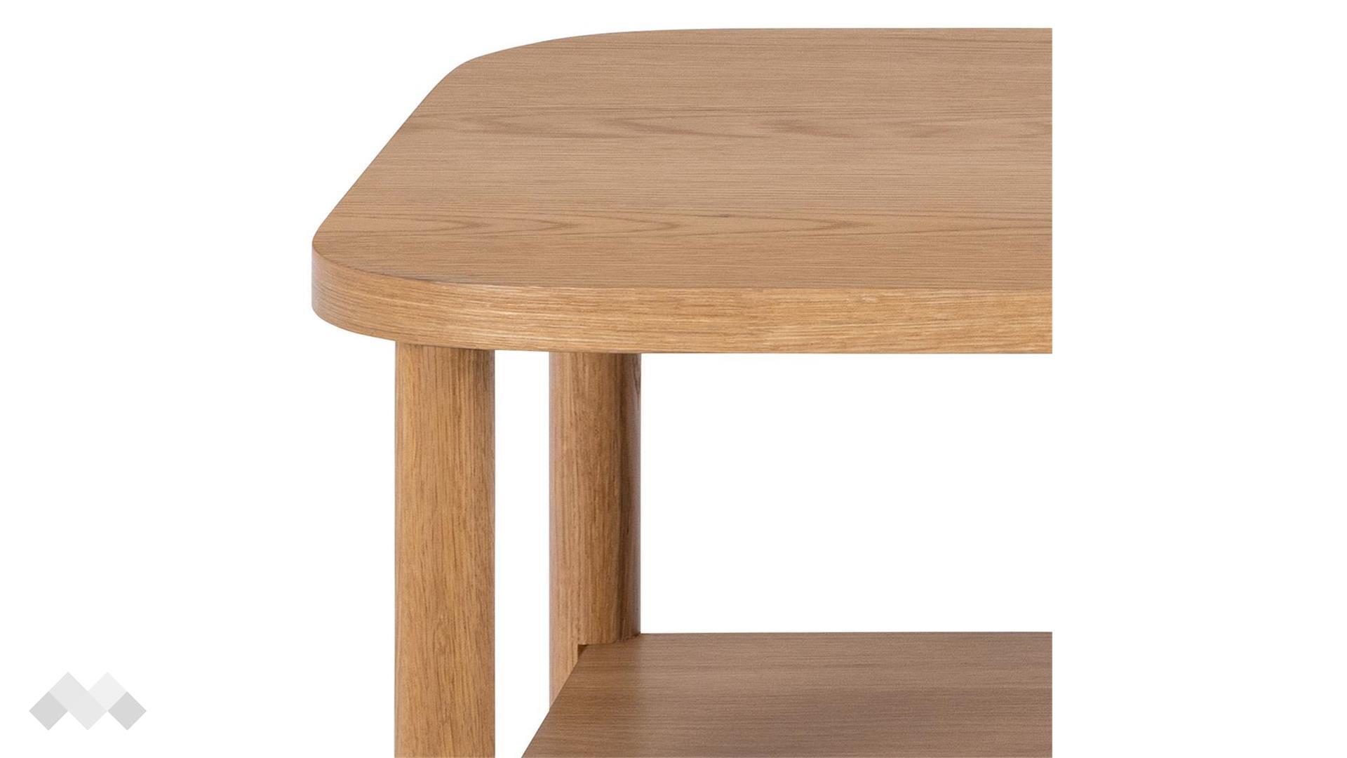 Холна маса Банбъри в правоъгълна форма е идеалното съчетание на стил и функционалност. Основата от масивна дървесина осигурява стабилност, докато двата плота предлагат допълнително място за съхранение или декорации. Гладките ръбове и кръглите крака придават на масата изтънченост и хармония, създавайки усещане за лекота и елегантност в помещението.