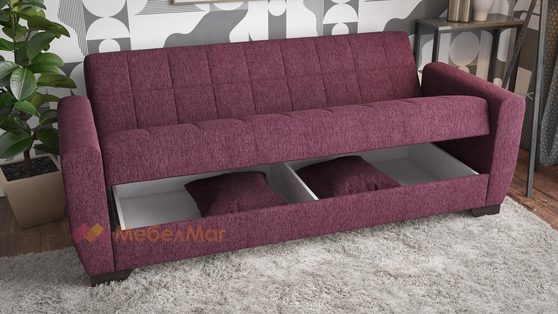 Освен че е комфортен, диван Барато е и многофункционален. С минимално усилие, за миг се превръща в широко легло, благодарение на клик-клак механизъм, а под седалката се крие просторна ракла, където да съхраняваш завивки, възглавници и други вещи. Дамаската е приятна на допир от здрав, устойчив на износване и замърсявания текстил.