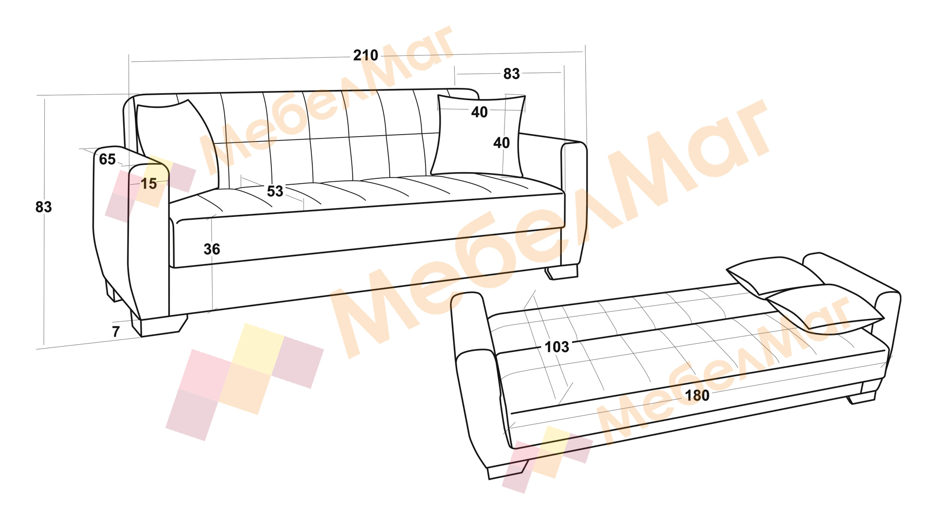 Д: 210 см Ш: 83 см В: 83 см