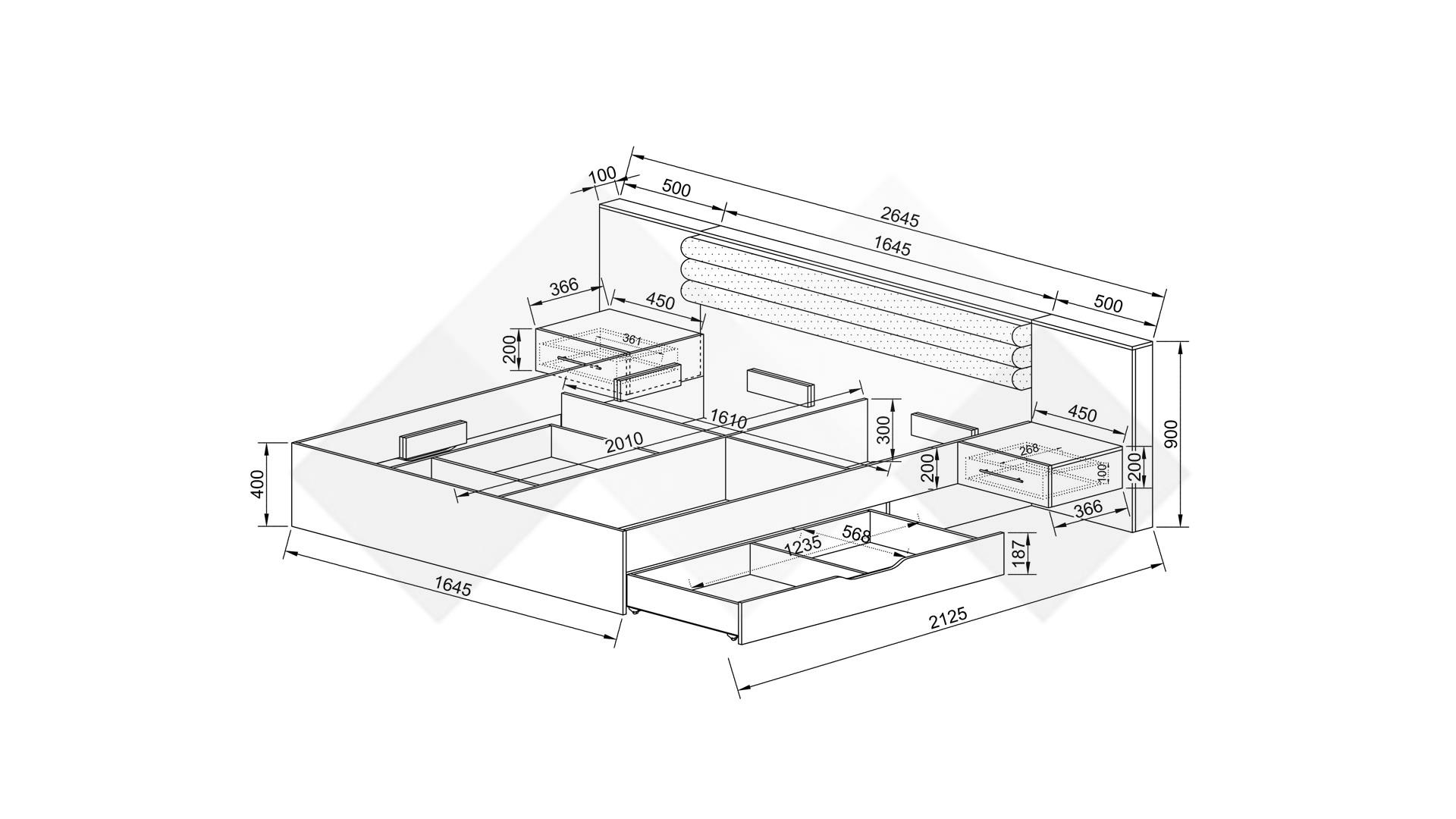 Спалня: Д: 204.2 см Ш: 164.2 см В: 89 см