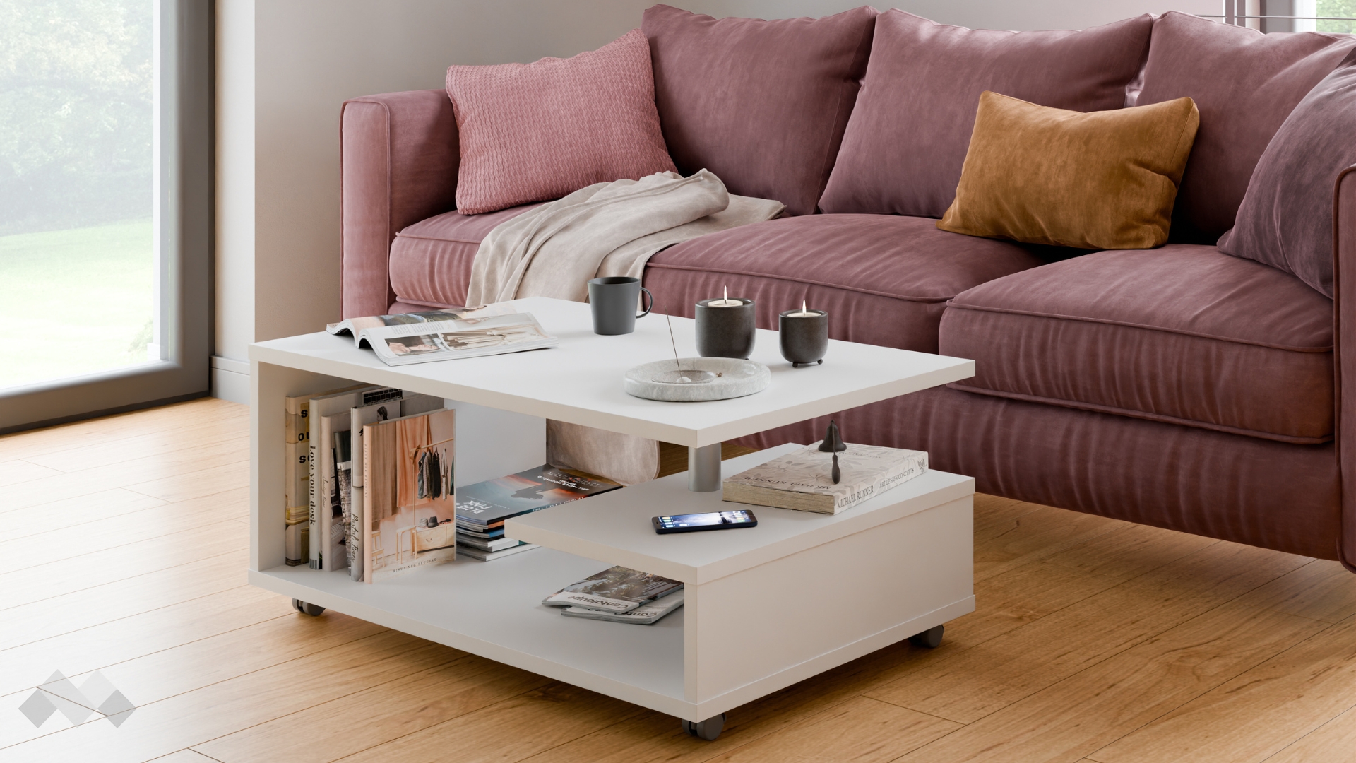 Колелцата на масата правят преместването ѝ изключително лесно и удобно. Без усилие можеш да я позиционираш навсякъде в стаята, в зависимост от нуждите и желанията ти. Това я прави практичен избор за динамичния и съвременен начин на живот.