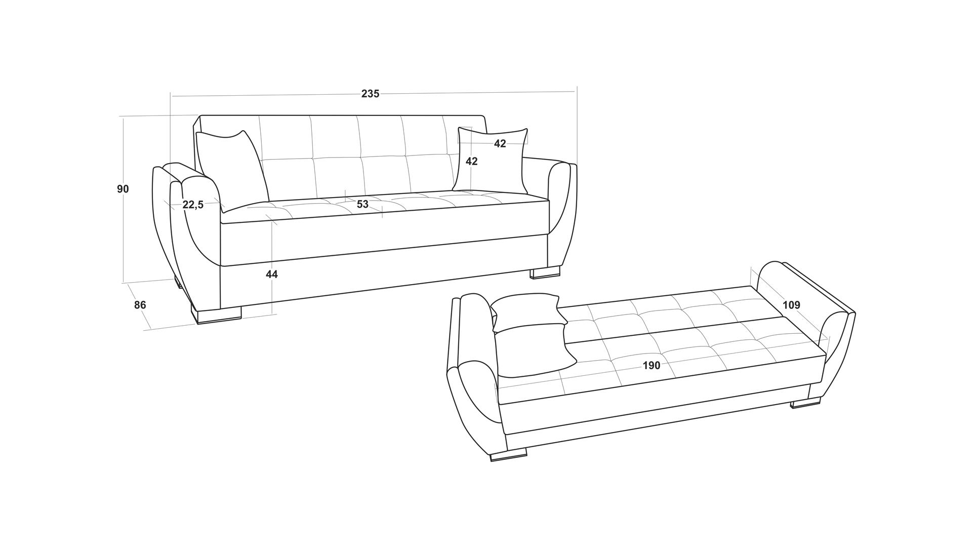 Диван Беланот е стилно и практично решение за твоя дом, което съчетава комфорт, функционалност и елегантна визия. Подходящ за всекидневна, гостна или дори по-компактно пространство, той предлага удобно място за сядане и практична функция за сън.