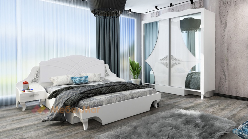Спален комплект Белисима е с красива и елегантна визия. Цветовата комбинация на бяло шагре с бял гланц ще придаде изискана визия на твоята спалня и усещане за простор. Това е цвят, който се вписва чудесно във всеки интериор.