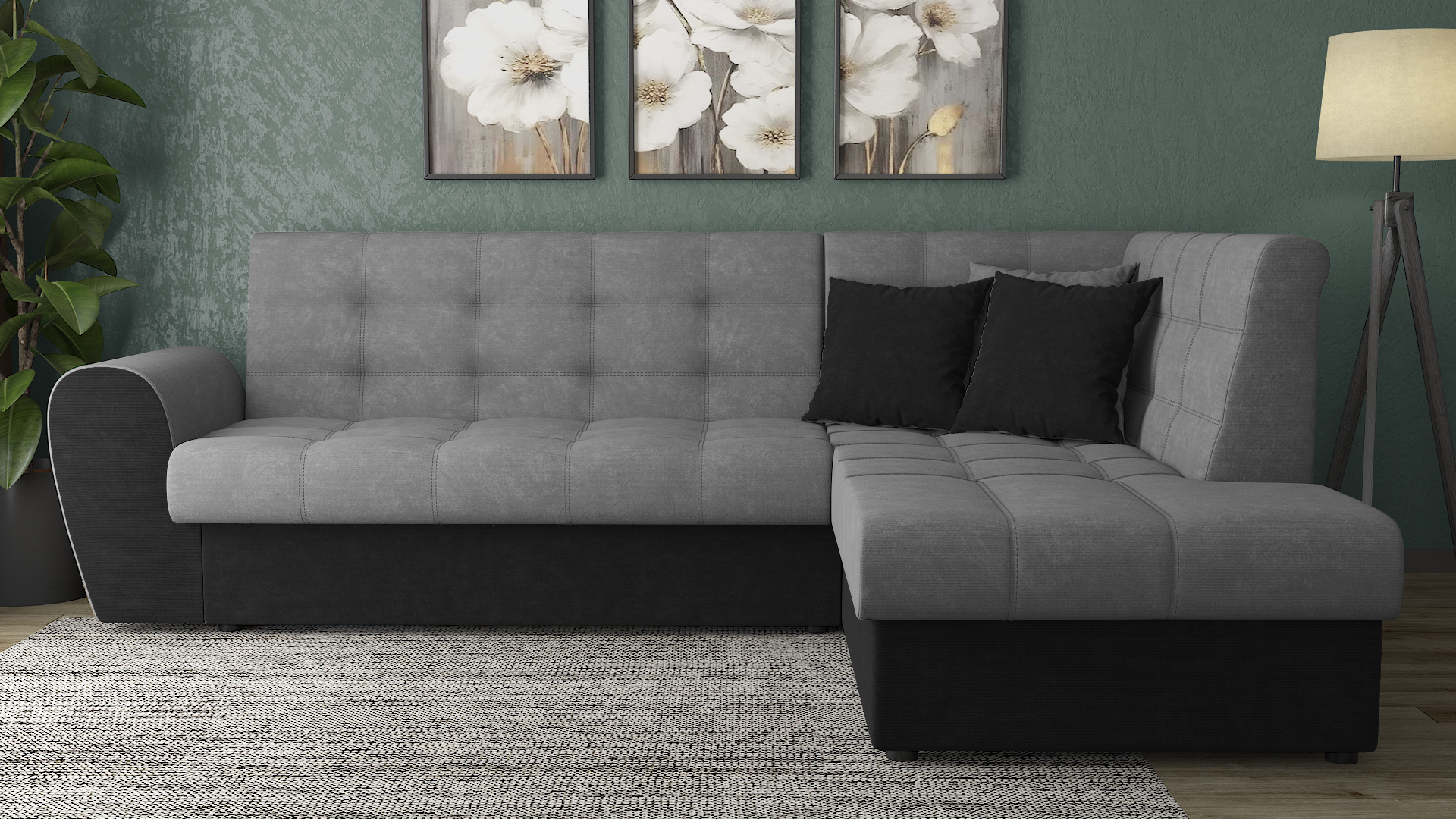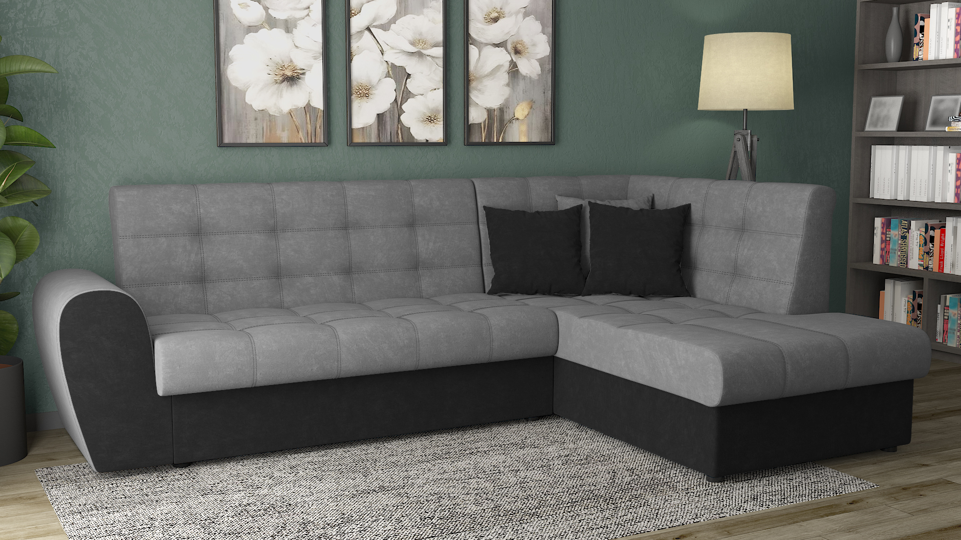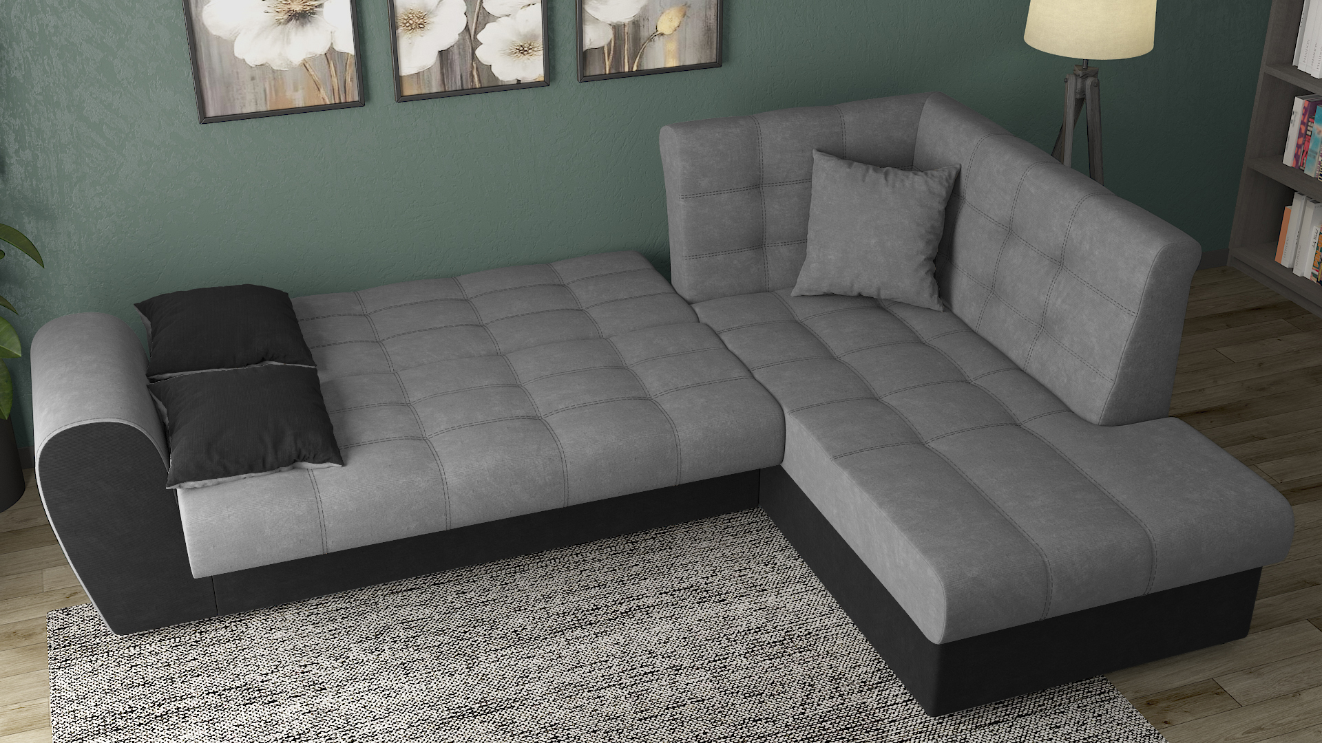 Ъглов диванБелла Sсив с черно с посока: десен ъгъл