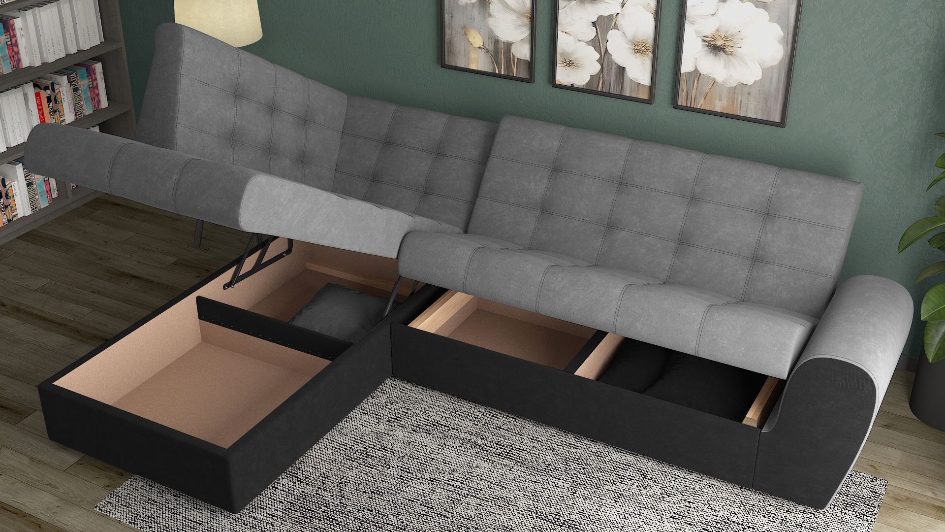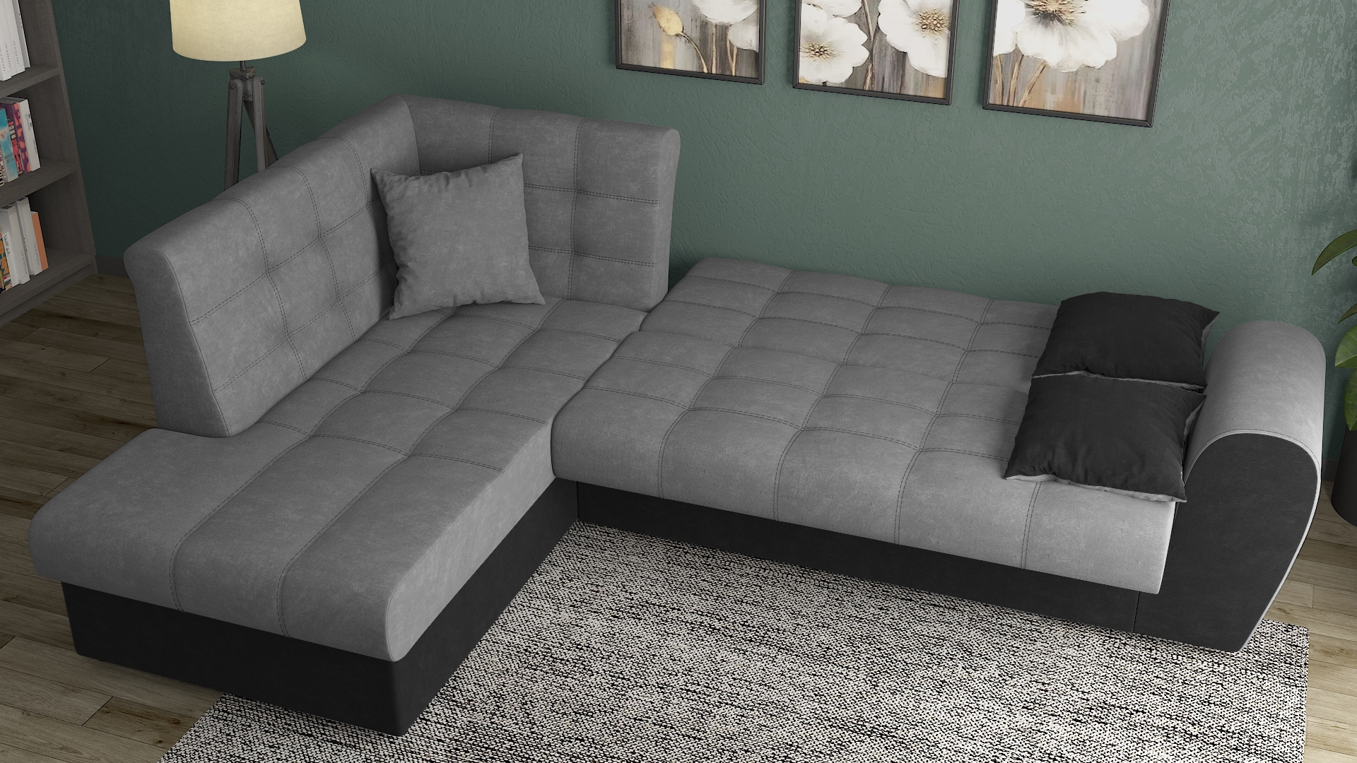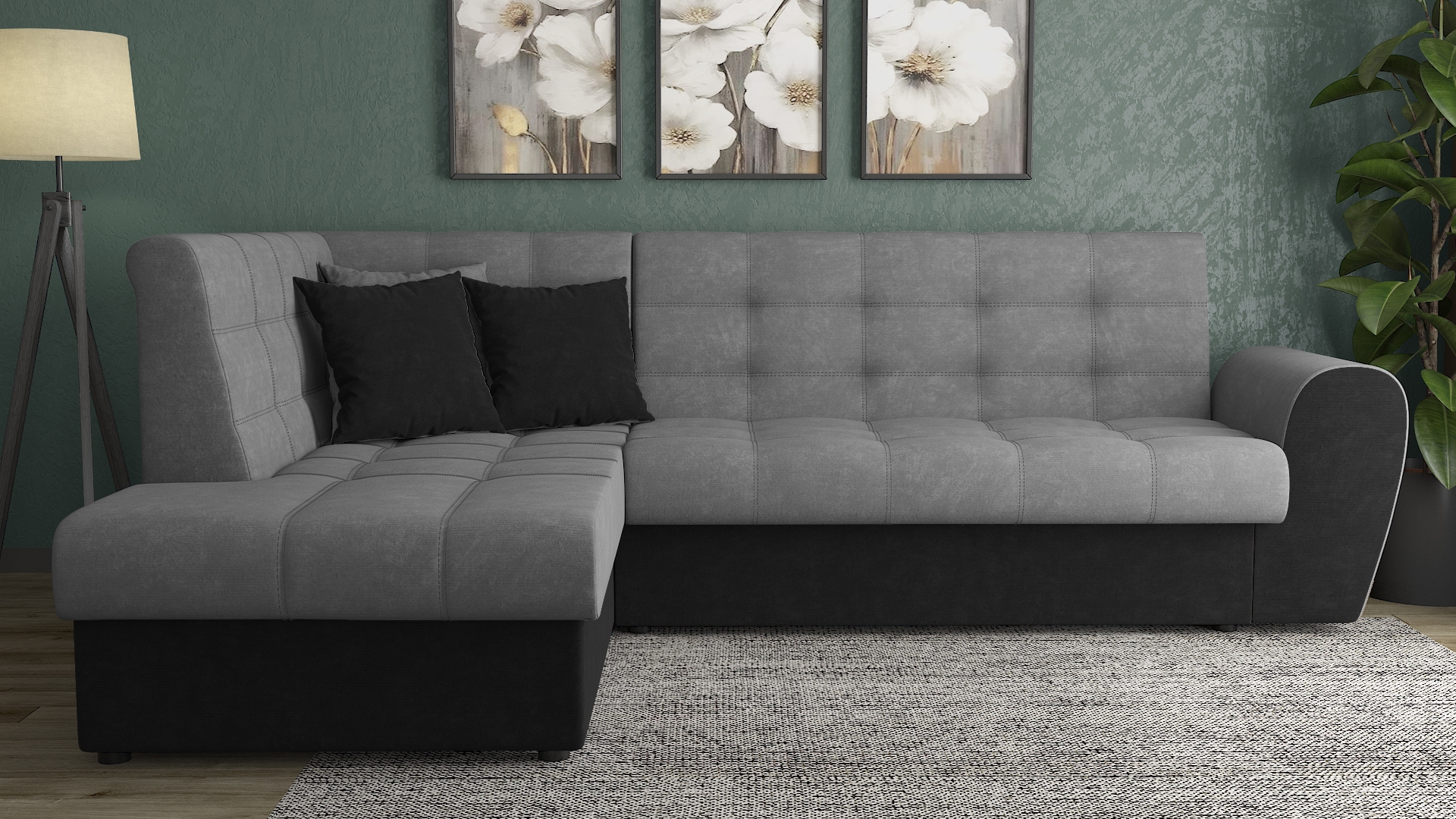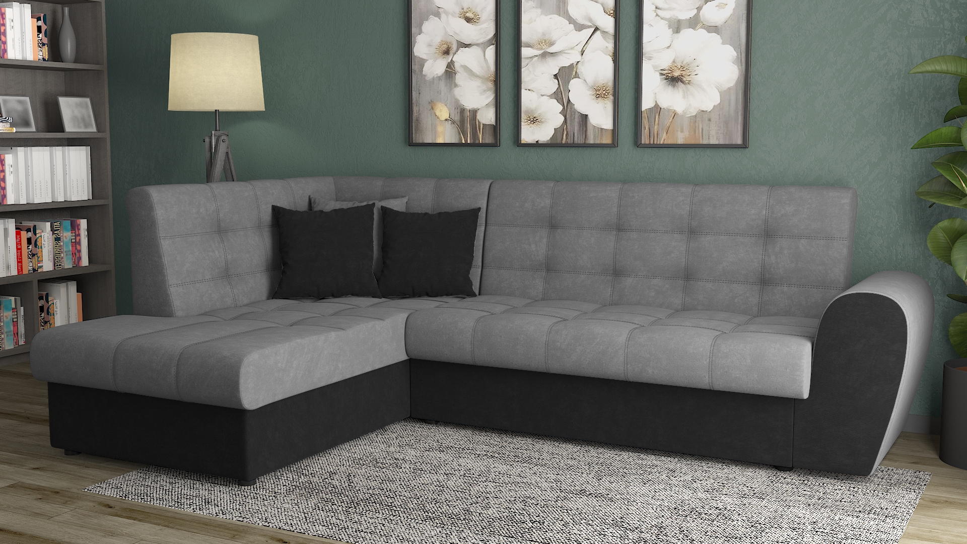 Ъглов диванБелла Sсив с черно с посока: ляв ъгъл