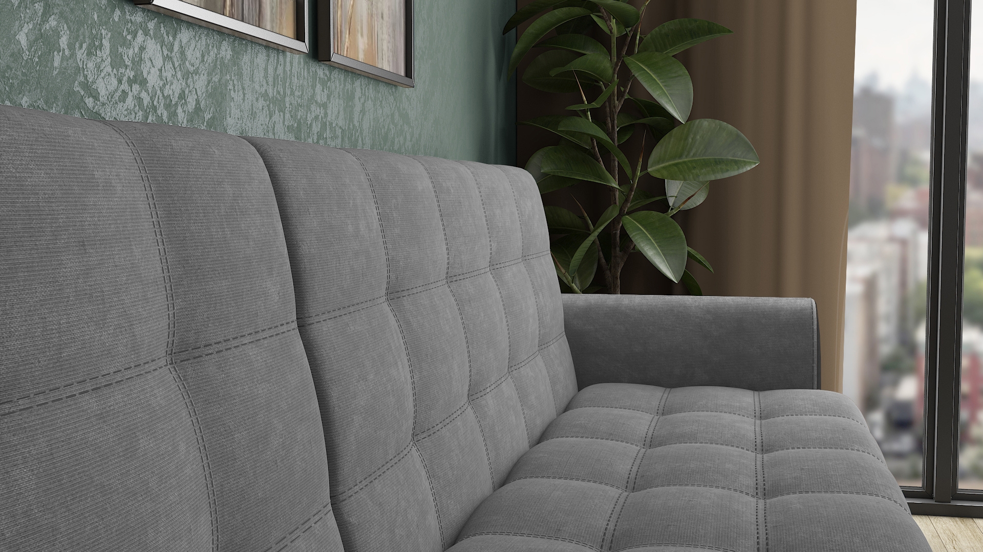 Ъглов диван Белла S съчетава стил, комфорт и изключителна практичност – перфектен избор за съвременния дом. Благодарение на своя клик-клак механизъм, диванът лесно се трансформира в удобно легло, което го прави отлично решение както за всекидневна почивка, така и за гости.