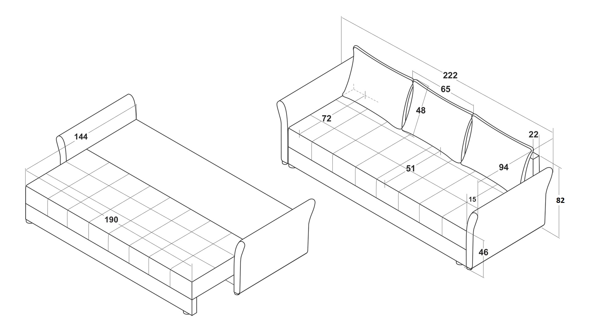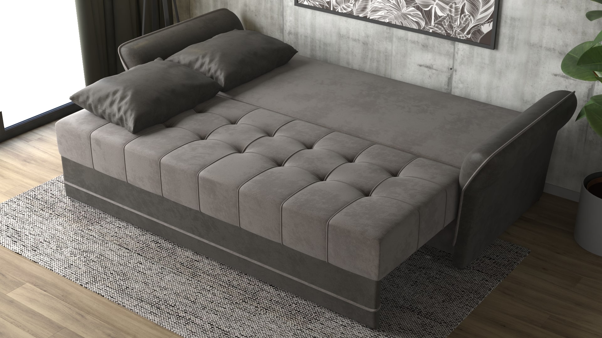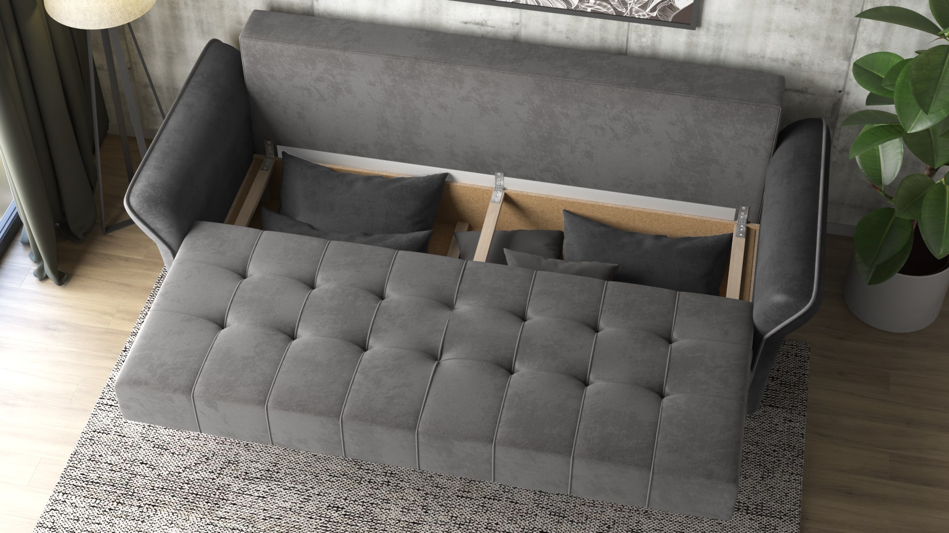Създаден да впечатлява със своя външен вид, диван Бени е и функционален – с минимално усилие се превръща в комфортно и просторно легло, благодарение на механизма с падащ гръб. Под седалката ще откриеш още един плюс – ракла, в която можеш да съхраняваш вещите, които искаш да скриеш от погледа си, за да придадеш спретнат и подреден вид на стаята.