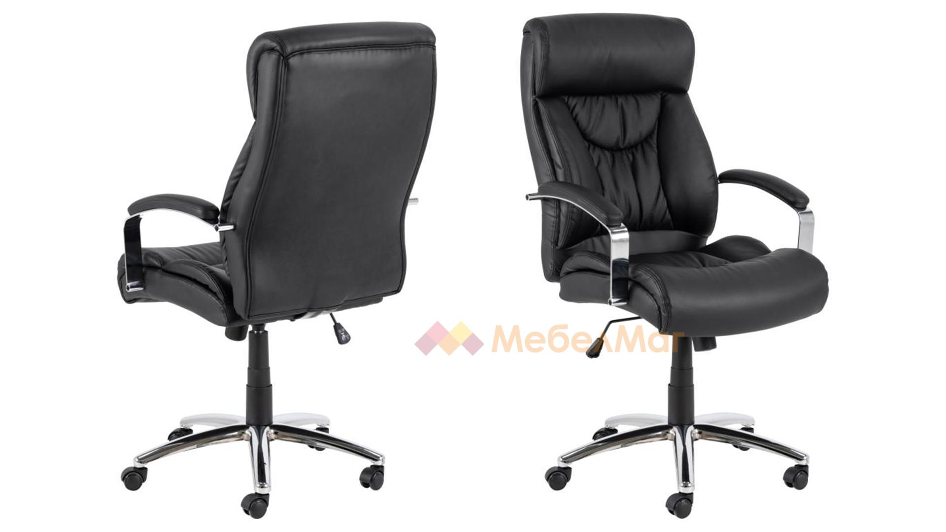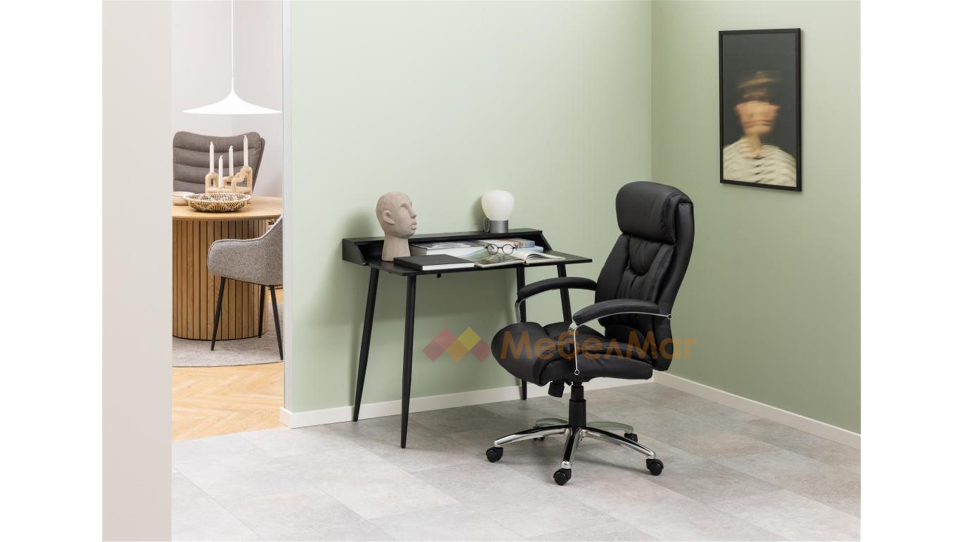 Офис стол Бенсън е перфектното съчетание на стил, комфорт и функционалност. Изработен от висококачествена черна изкуствена кожа, той придава елегантен и професионален вид на всяко работно пространство.