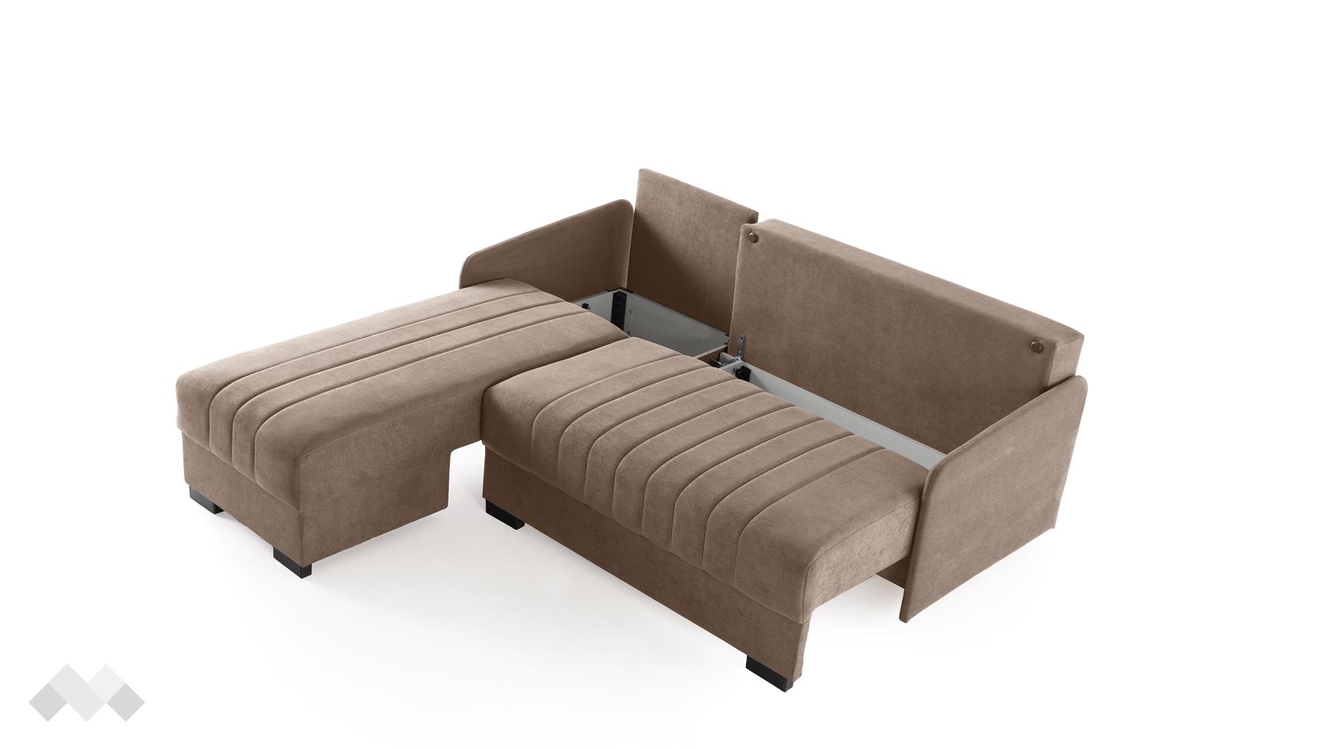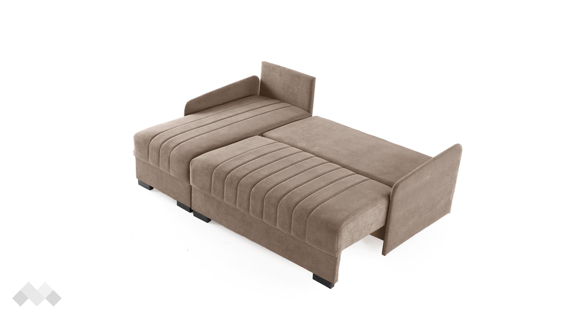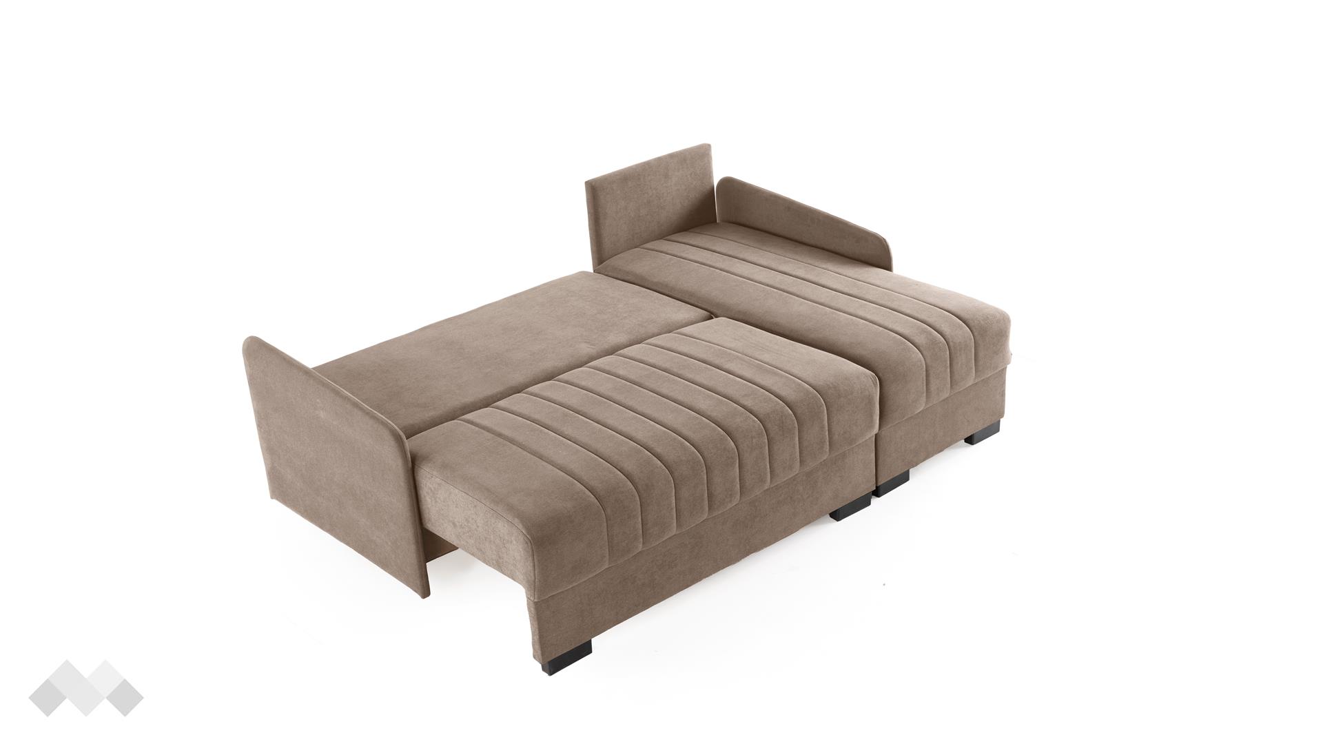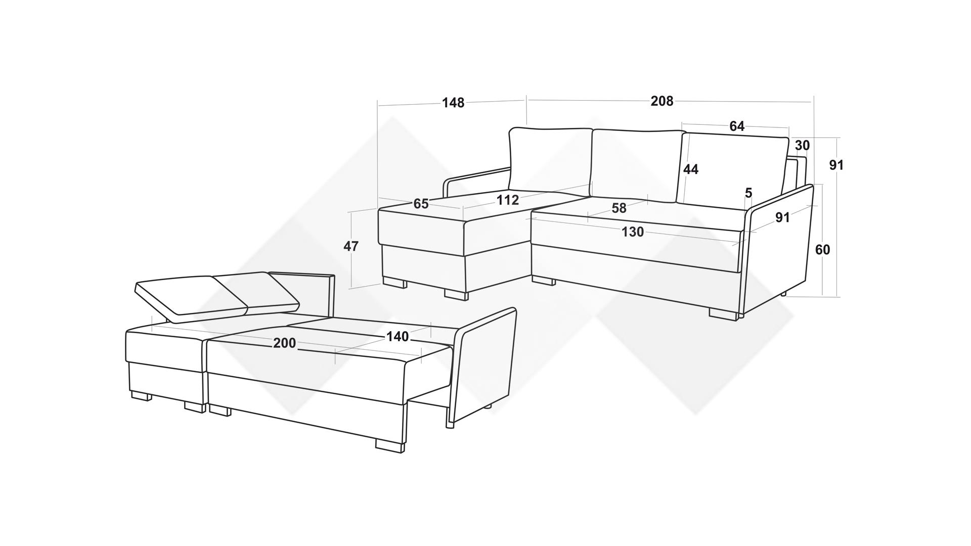 Този модерен и стилен модел ще бъде перфектното допълнение към твоят хол. Ъглов диван Бета предлага достатъчно пространство за комфортното настаняване на всеки гост у дома. Диванът разполага с функция сън, превръщайки се в удобно легло за гости - 140/200 см., благодарение на падащия гръб. Друго предимство е практична ракла за съхранение на спално бельо или други вещи.