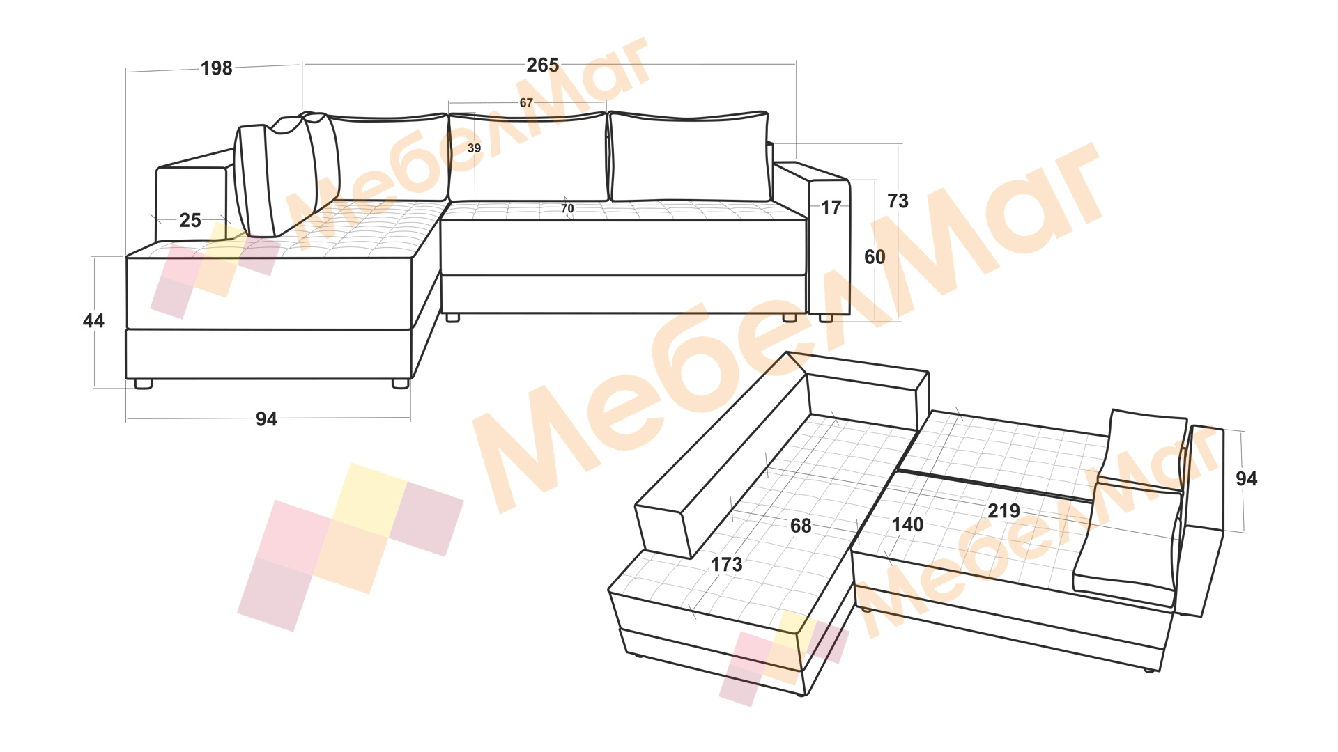 Д: 265 см Ш: 198 см В: 73 см