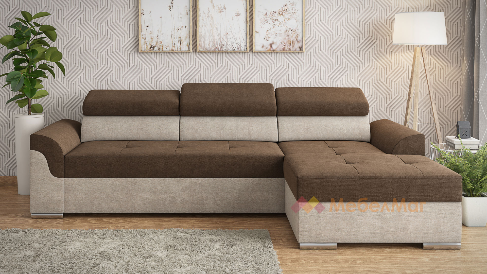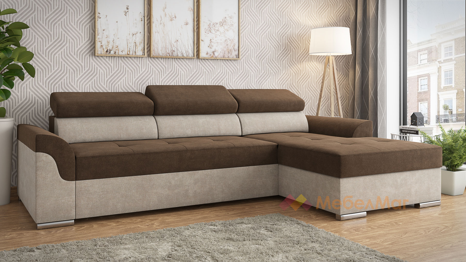 Ъглов диванБолерокафяв с бежово с посока: десен ъгъл