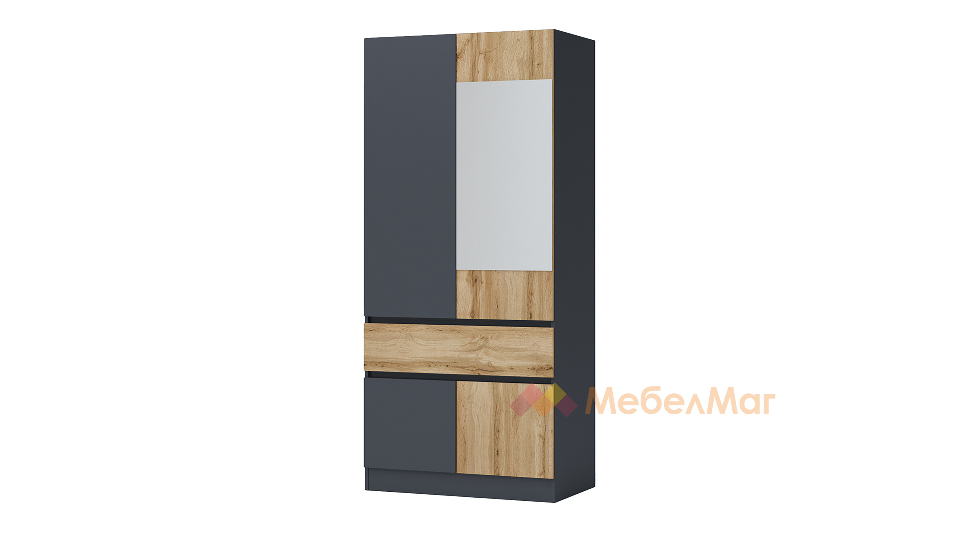 ✓ двукрилен ✓ чекмедже ✓ шкаф ✓ лост за закачалки ✓ огледало ✓ стилен декор ✓ механизъм за плавно затваряне ✓ качествена изработка