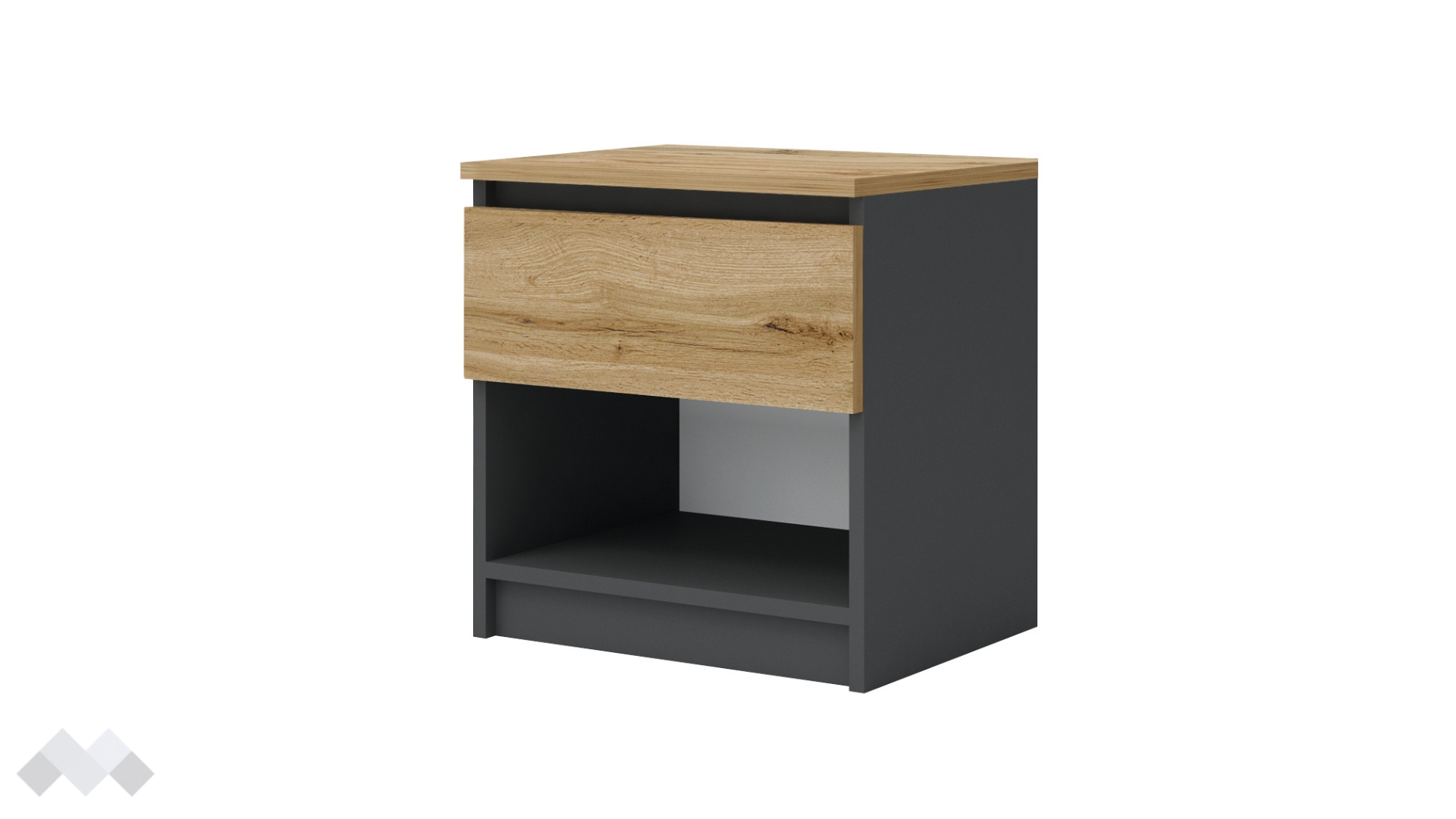 Нощен шкаф Борей е идеален за поставяне до леглото, осигурявайки лесен достъп до всичко необходимо през нощта или рано сутрин. Шкафът разполага с рафт и чекмедже, които предлагат удобно пространство за съхранение на книги, списания или други лични вещи, които искаш да бъдат на една ръка разстояние.