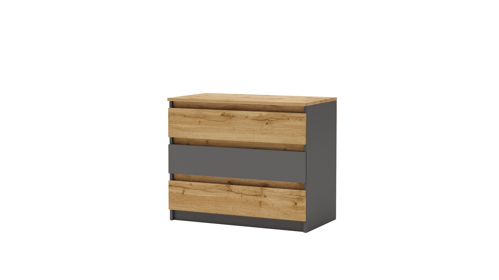 Скринът разполага с три просторни чекмеджета, които предлагат обширно място за съхранение на бельо, аксесоари или други лични вещи. Чекмеджетата се движат плавно и безшумно, осигурявайки лесен достъп до съдържанието им. Върху него можеш да поставиш красива декорация, любима фотография на цялото семейство или сувенир, за да създадеш още по-уютна и хармонична обстановка у дома.
