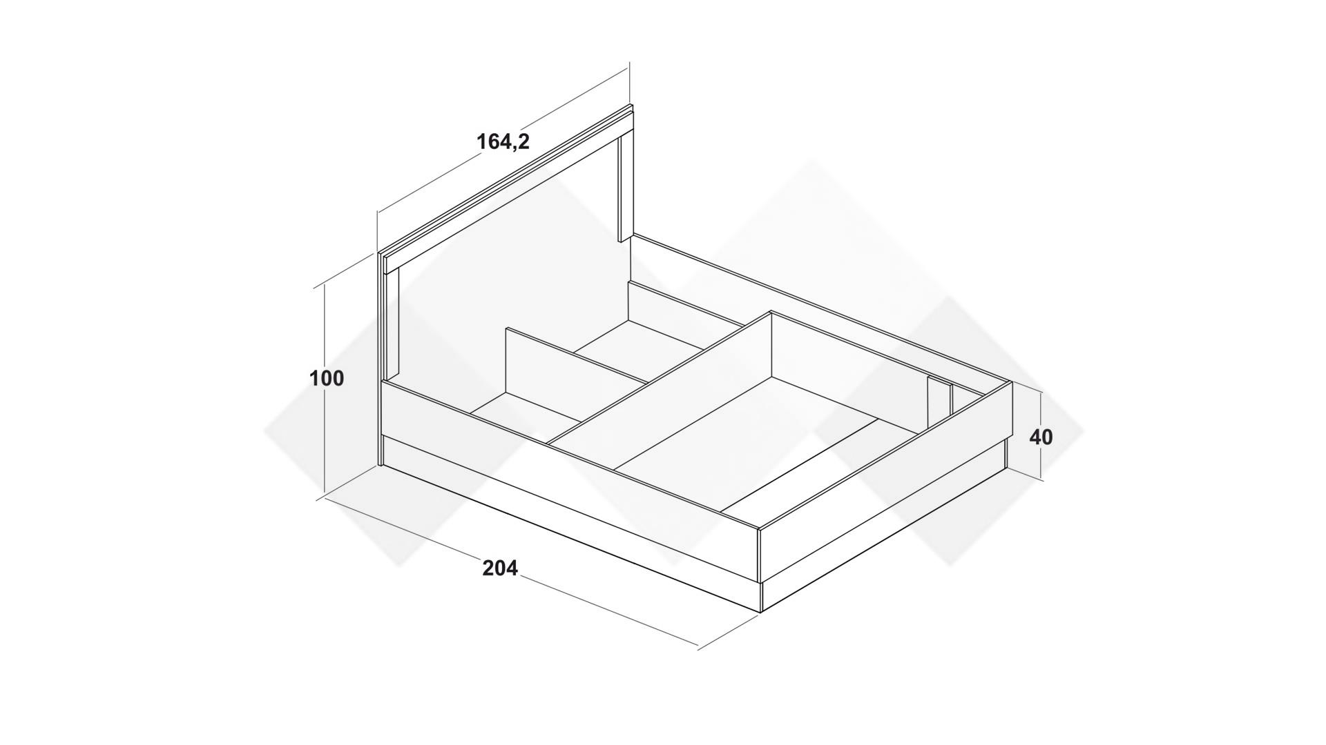 Спалнята е подходяща за матрак с размери 160/200 см, което я прави идеална за комфортен сън. Високата табла на модела предоставя допълнителна опора при облягане и комфорт при четене на любима книга или гледане на филм. Включеният повдигащ механизъм осигурява лесен достъп до подматрачното пространство, което е идеално място за съхранение на спално бельо, одеяла, сезонни дрехи и други вещи.