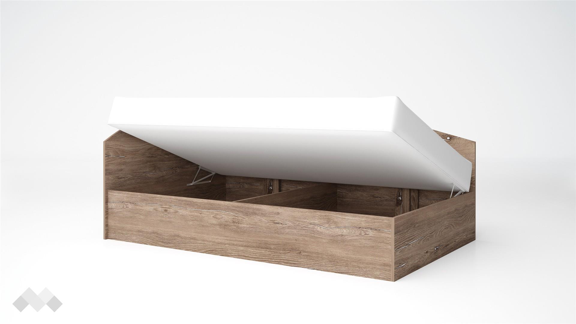 Включеният повдигащ механизъм предоставя лесен достъп до просторната подматрачна зона за съхранение. Това е идеално за прибиране на спално бельо, сезонни дрехи или други вещи, които искаш да бъдат организирани и лесно достъпни.