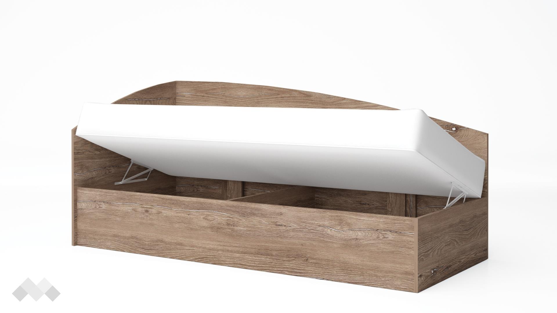 Подходящо за матрак с размери 82/190 см, леглото е идеално за детски стаи, гостни или малки спални. Включеният повдигащ механизъм осигурява лесен и бърз достъп до подматрачното пространство, което е перфектно за съхранение на спално бельо, играчки, сезонни дрехи и други вещи.