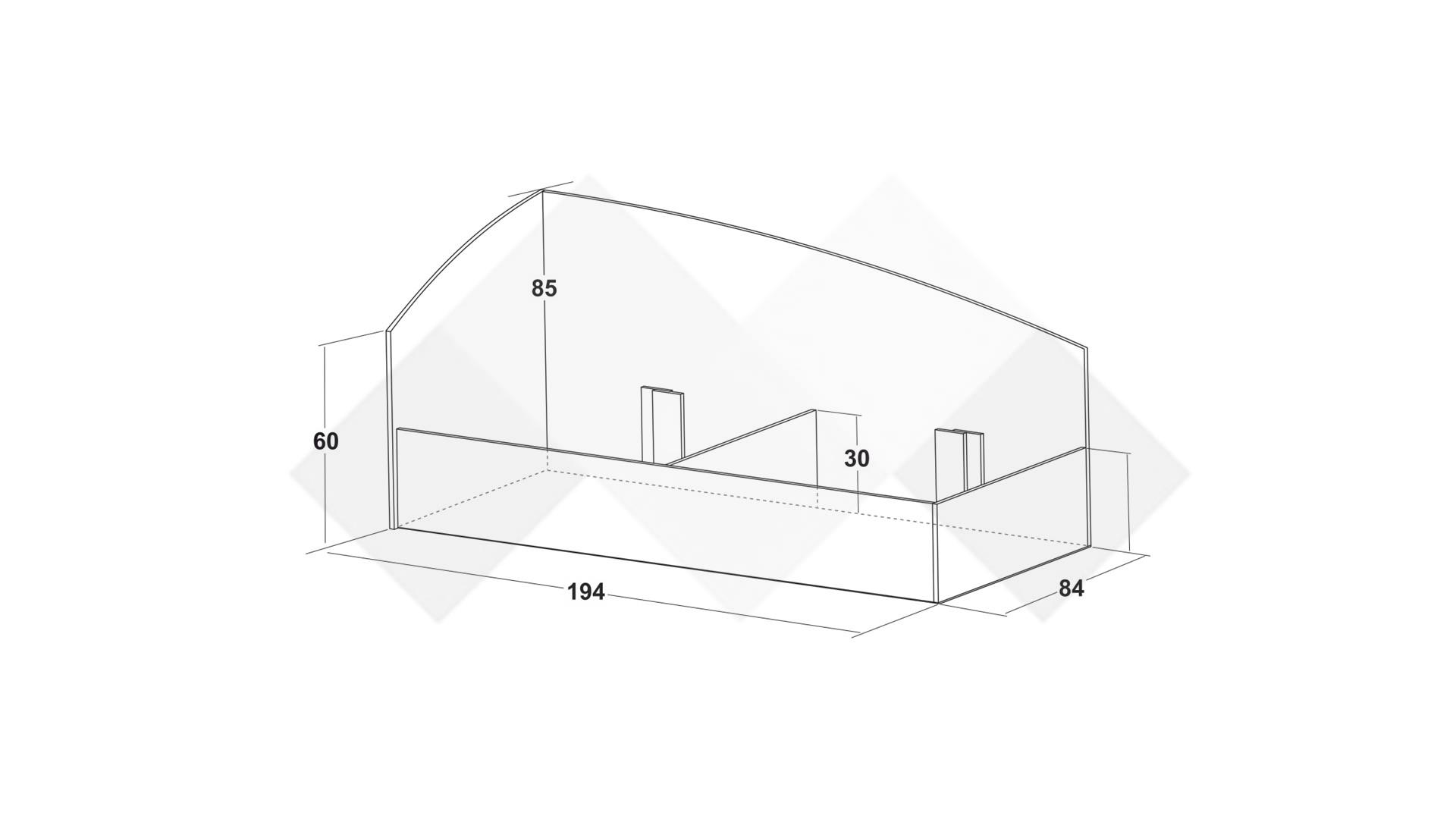 Д: 204 см Ш: 86 см В: 85 см