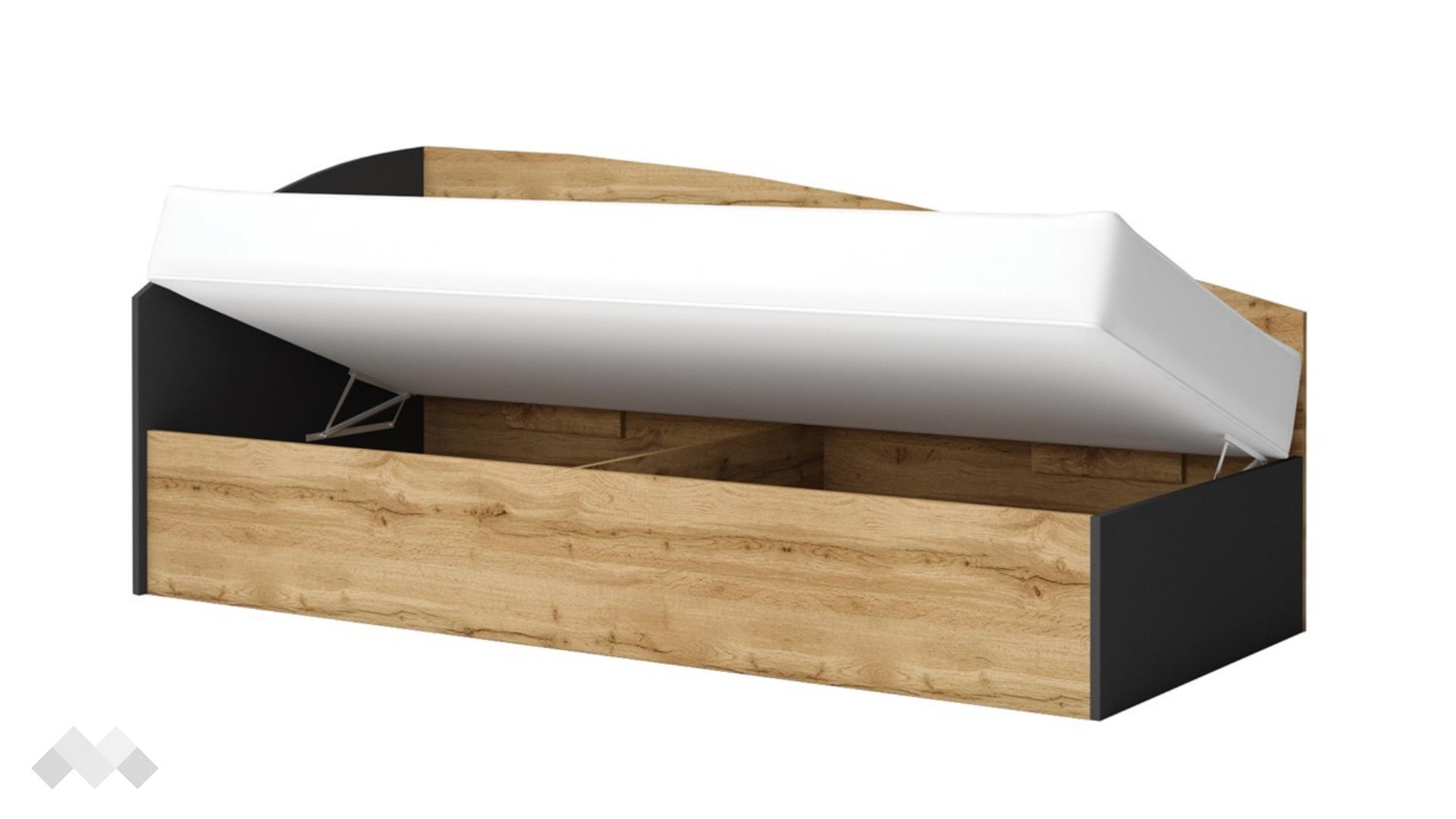 Подходящо за матрак с размери 82/190 см, леглото е идеално за детски стаи, гостни или малки спални. Включеният повдигащ механизъм осигурява лесен и бърз достъп до подматрачното пространство, което е перфектно за съхранение на спално бельо, играчки, сезонни дрехи и други вещи.
