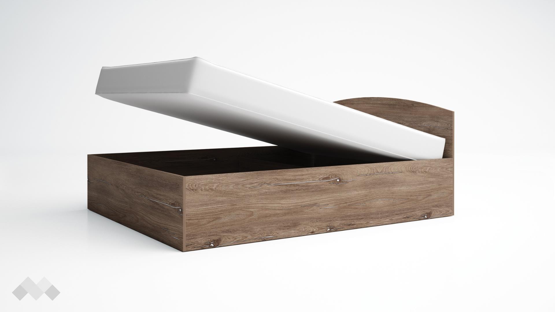 Спалнята е подходяща за матрак с размери 160/200 см, което я прави идеална за комфортен сън. Заоблената и по-ниска табла позволява да развихриш въображението си и да декорираш стената над нея за допълнителна индивидуалност. Включеният повдигащ механизъм осигурява лесен достъп до подматрачното пространство, което е идеално място за съхранение на спално бельо, одеяла, сезонни дрехи и други вещи.